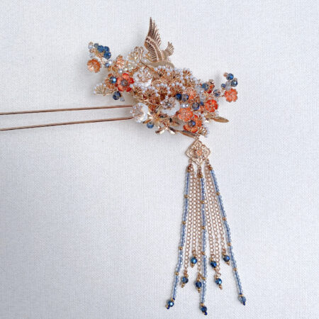 Flying Crane Beautiful Blossom Hairpin – Gold, Blue Rent from Rp2.090.000