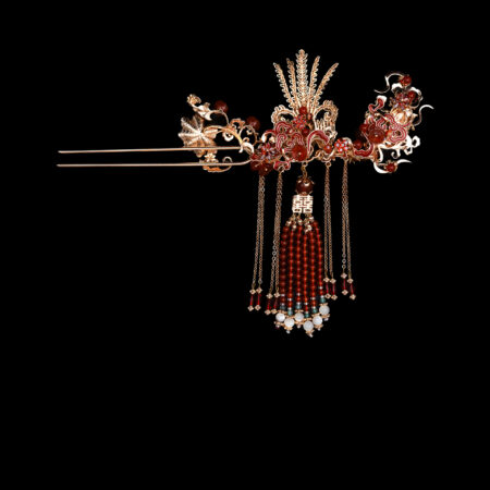 Colorful Regal Phoenix Lotus Fire Hairpin – Gold, Ruby (Right) Rent from Rp3.090.000