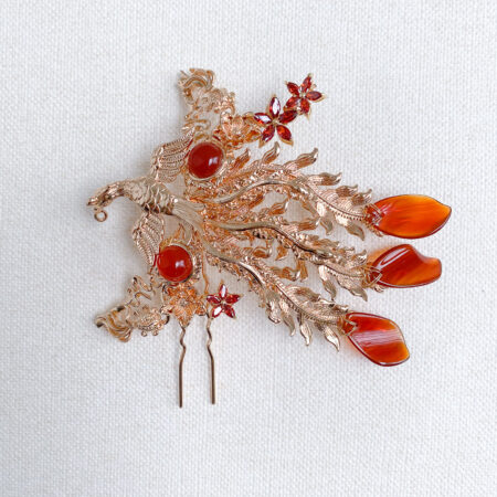 Flying Phoenix Tail Pagoda Ponytail Hairpin – Gold, Red Rent from Rp1.790.000