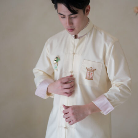 Carved Fan-Shaped Jade with Pearl Earrings – 18k Yellow Gold, Jade Rent from Rp1.590.000