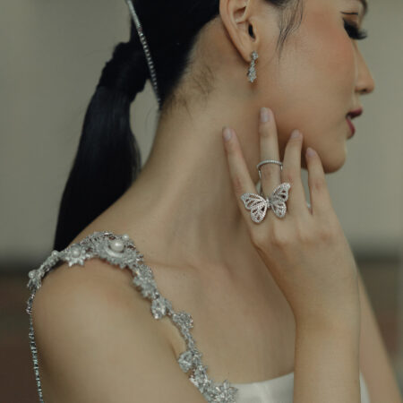 Pearl Bouquet Earrings – Rhodium White Gold, White Pearl (Needle) Rent from Rp790.000
