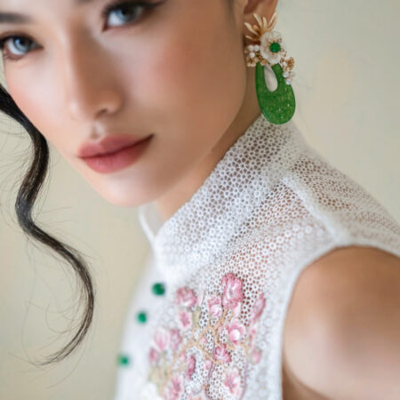 Lunar Golden Peony Pear Bud Jade Earrings – Gold, Coral Jade Rent from Rp1.790.000