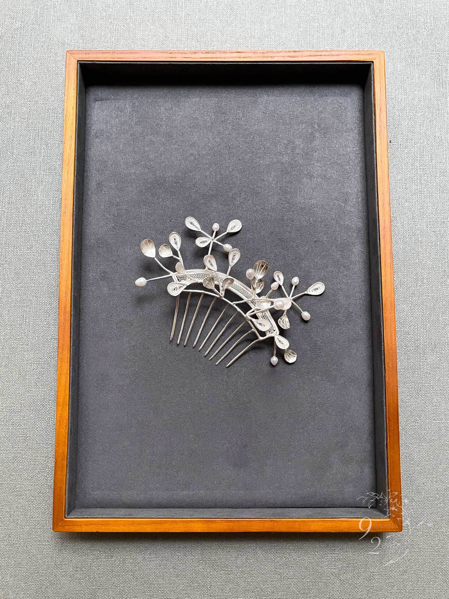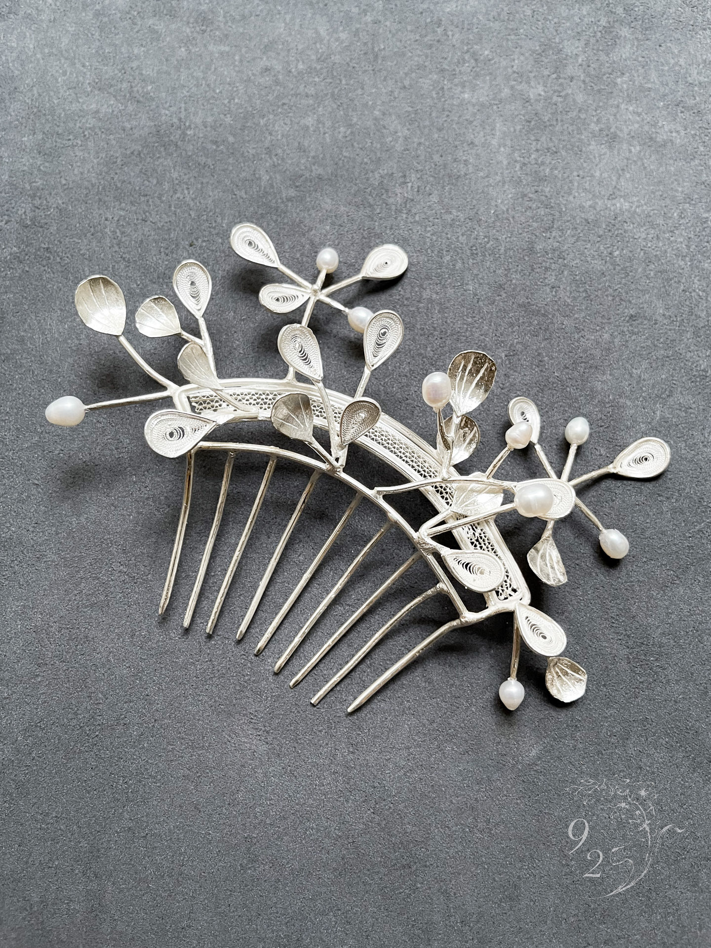 Round Leaves with Pearls Hairpiece – Unplated Silver