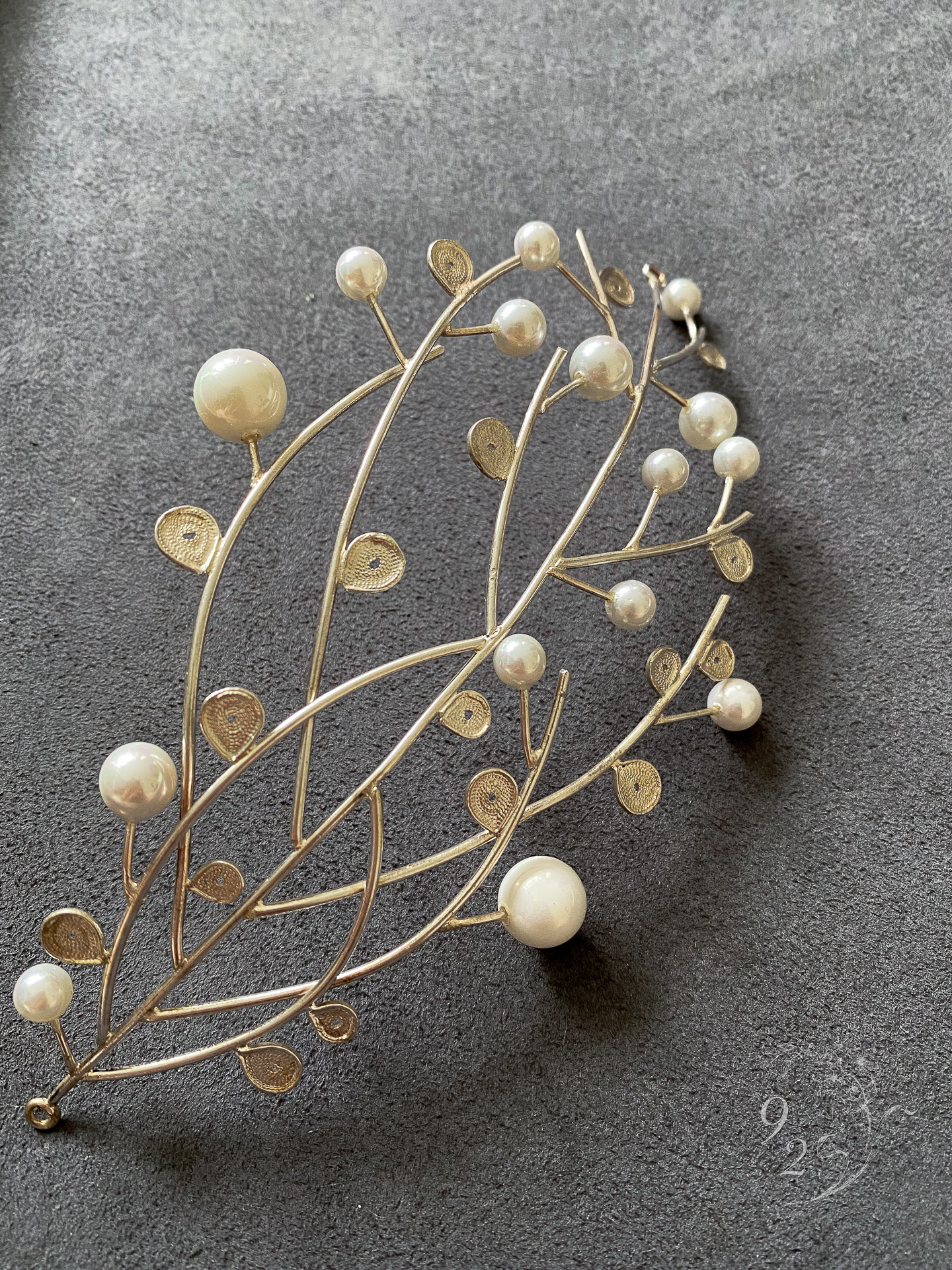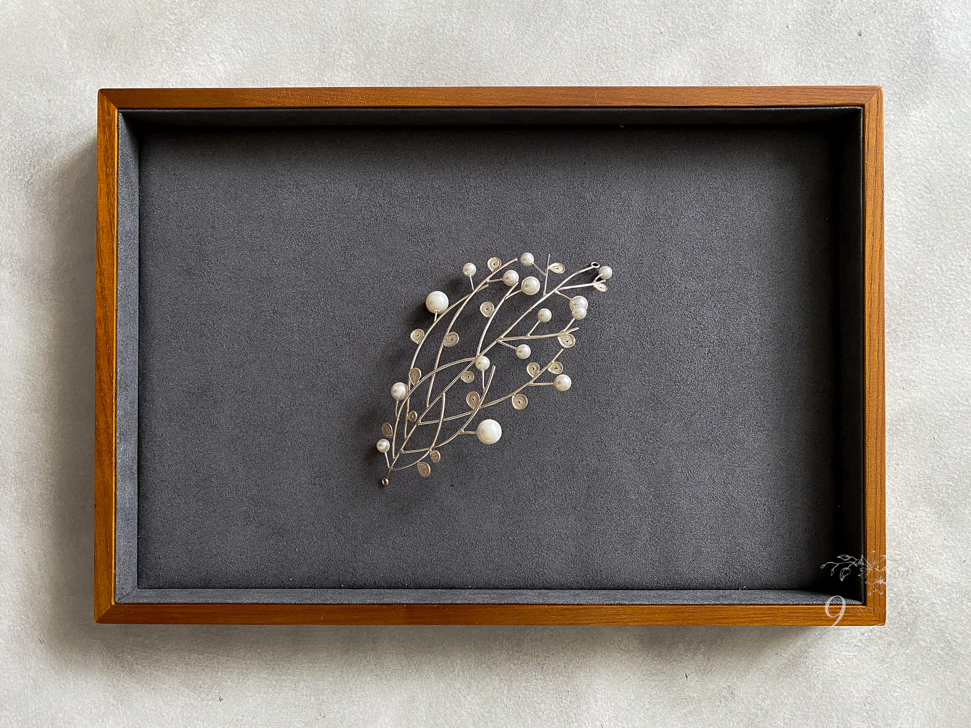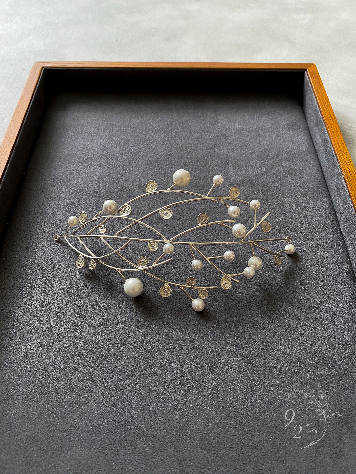 Round Leaves with Pearls Hairpiece – Unplated Silver
