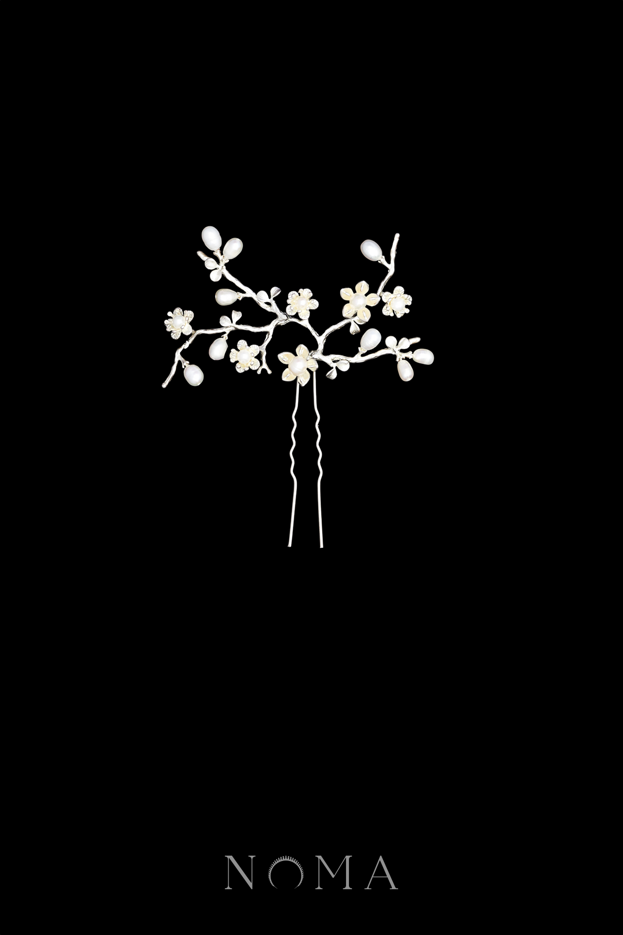 Round Leaves with Pearls Hairpiece – Unplated Silver
