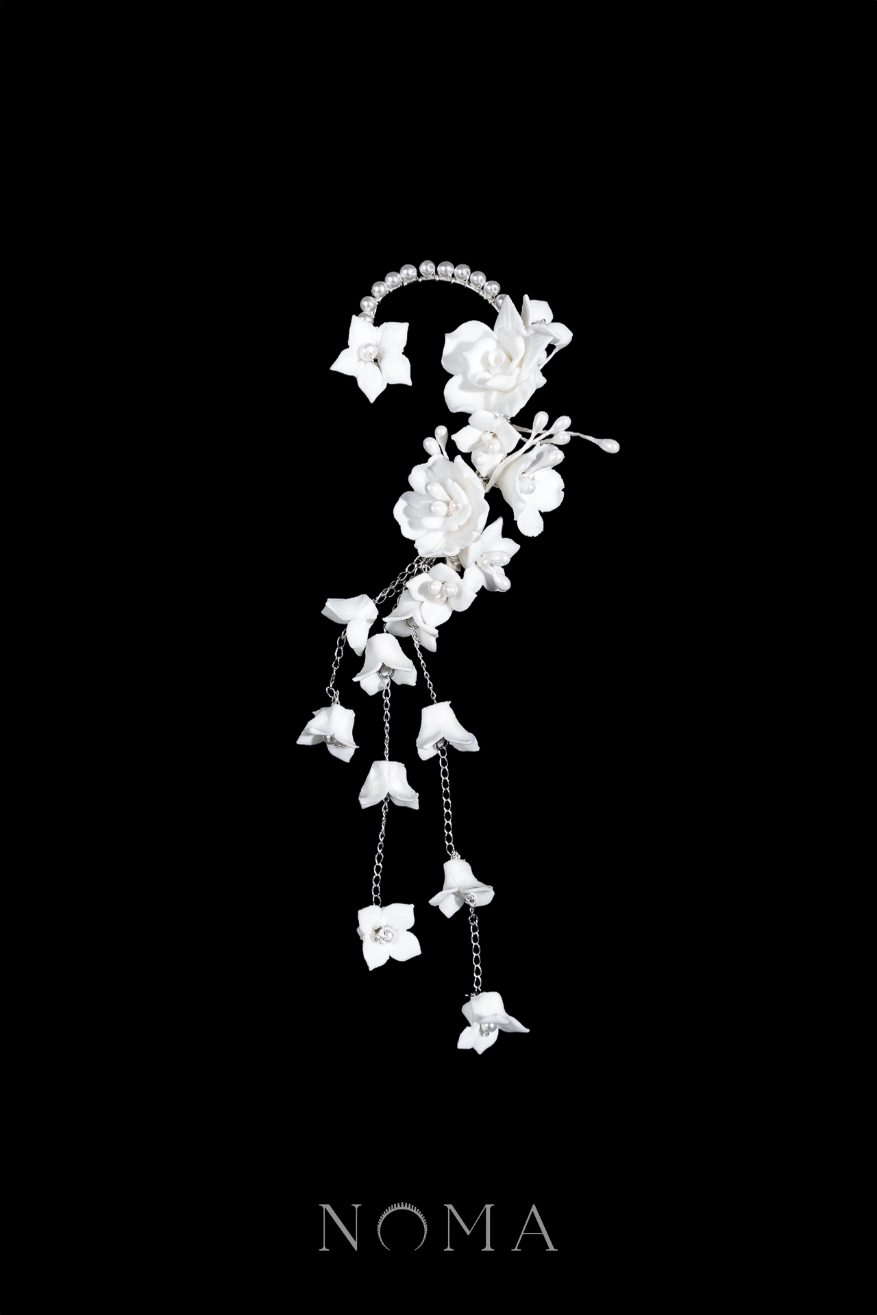 Cascading Clay Flower Earpiece – White Silver (Left)