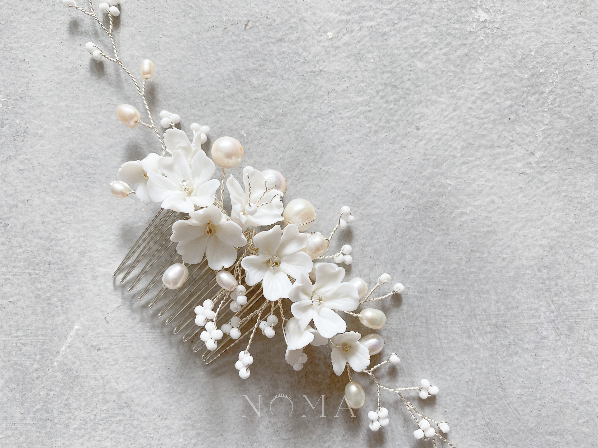 Clay Flower Blossom Dainty Haircomb – White Silver