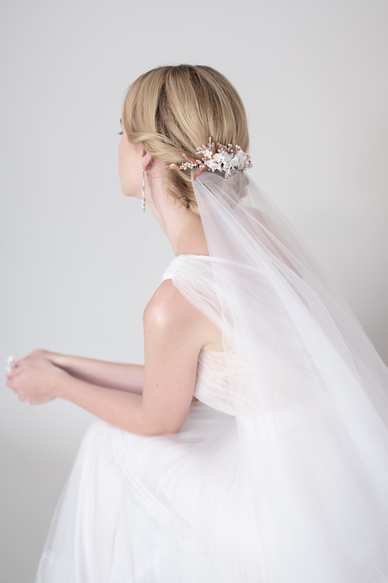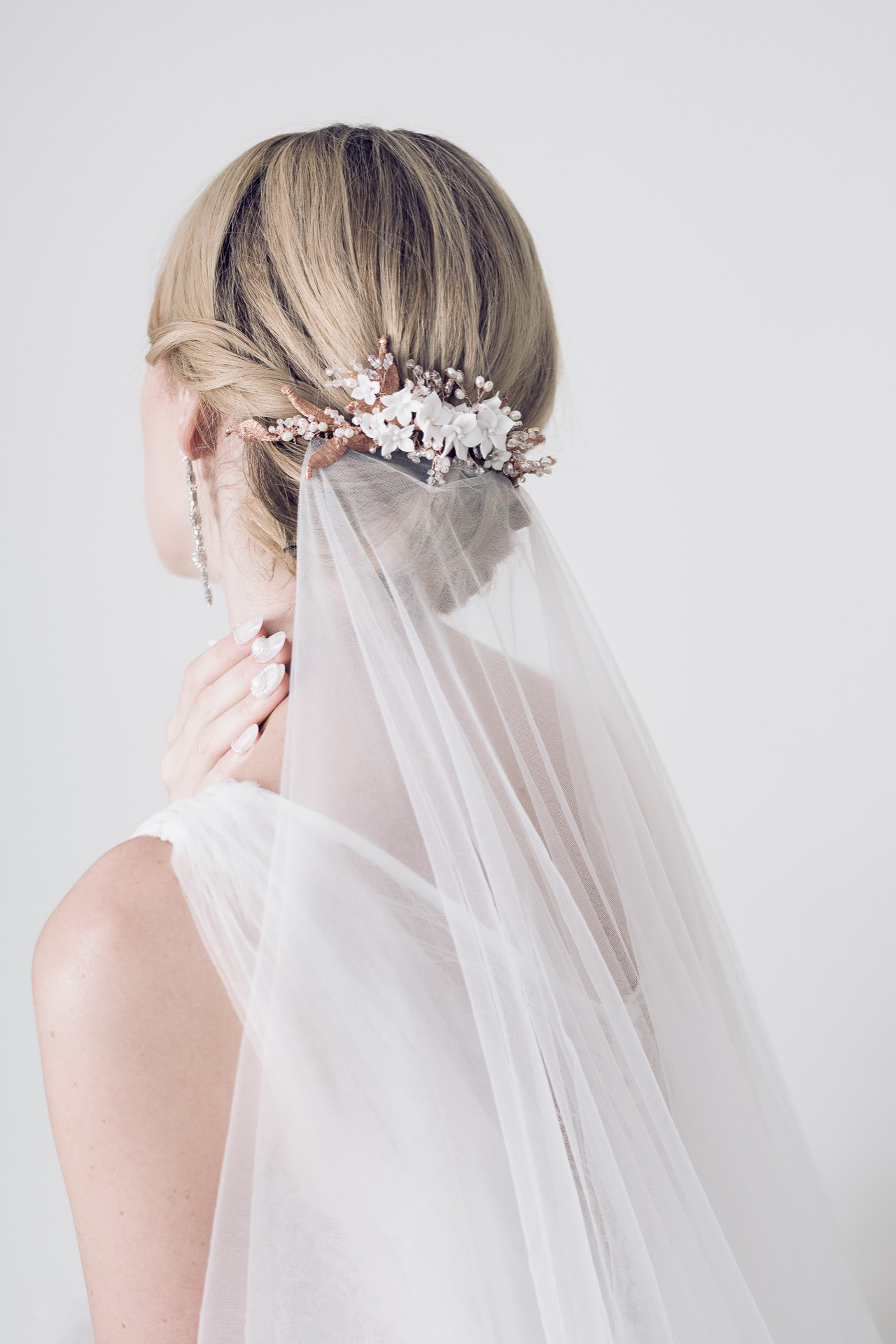 Clay Flower Lily Mesh Leaves Haircomb – Rose Gold