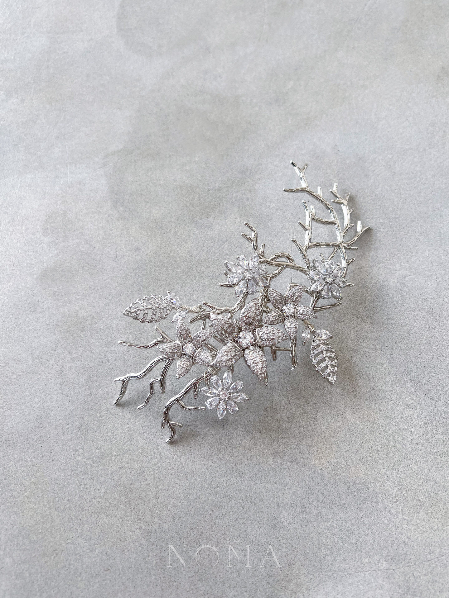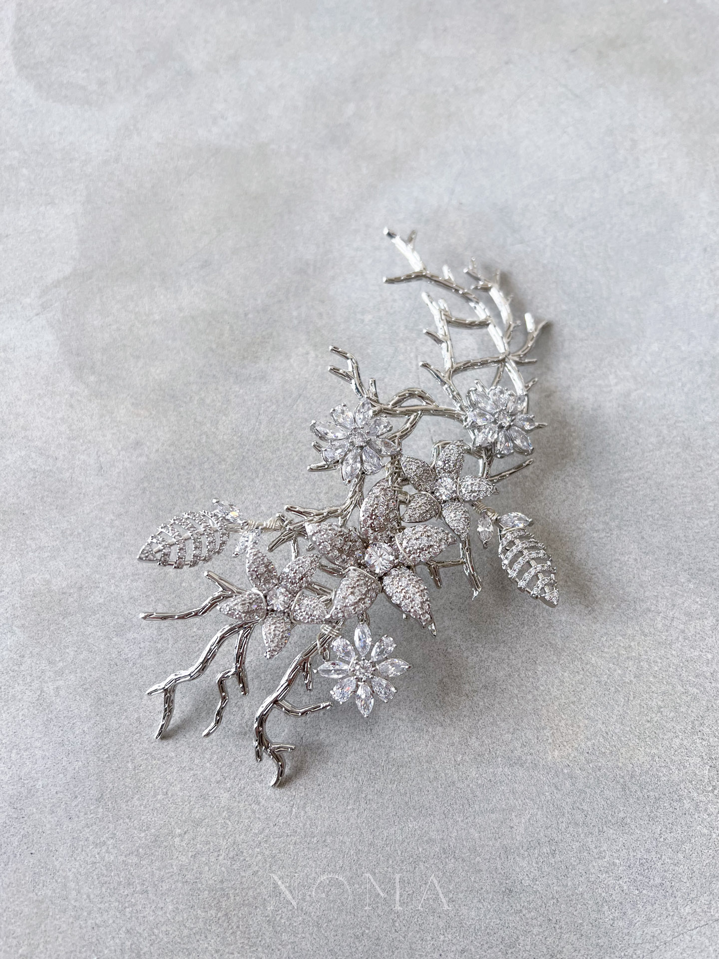 Paved Flower Branch Medium Hairvine/Brooch – White Gold
