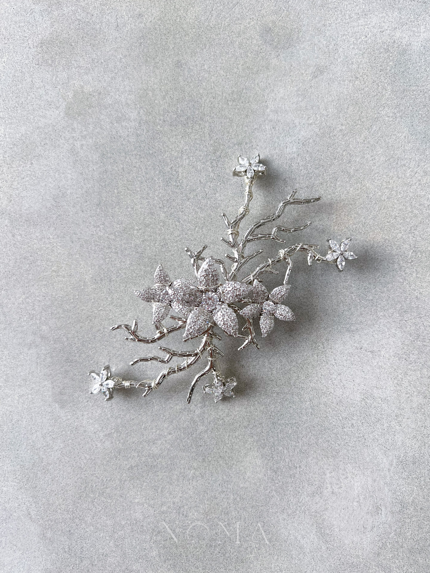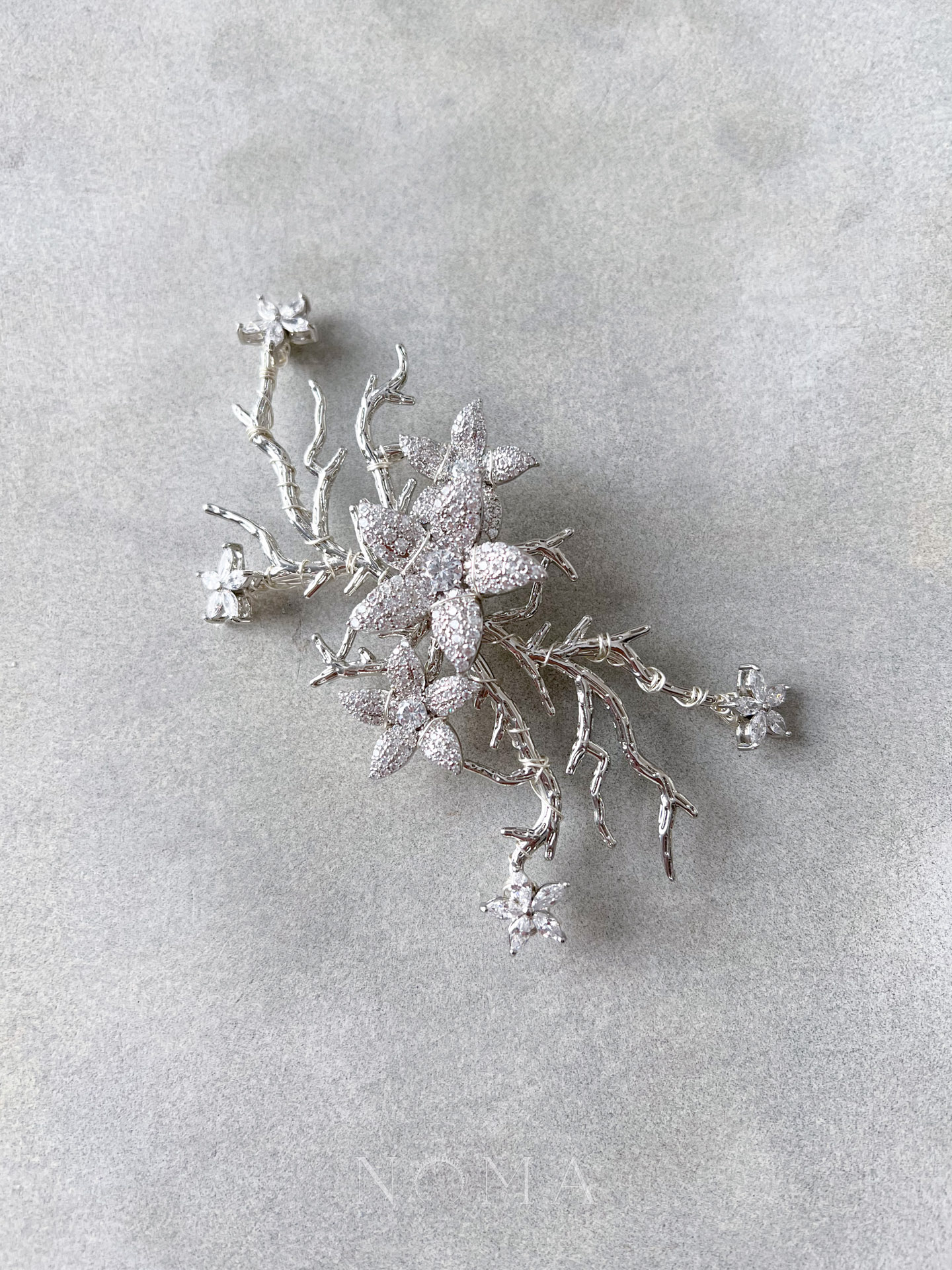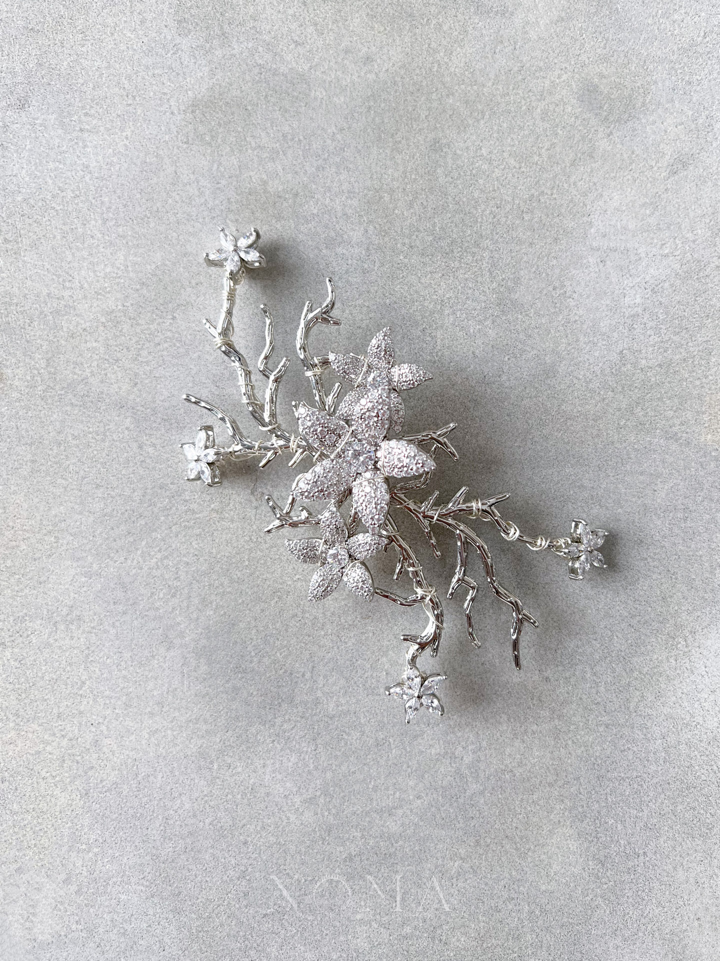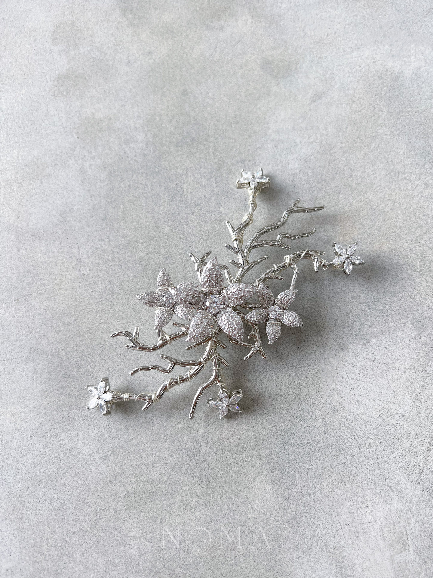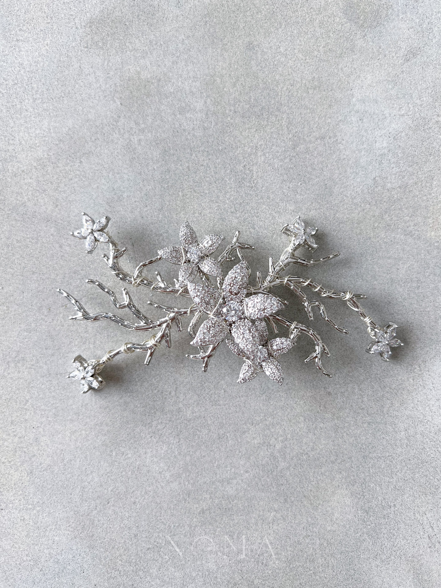 Paved Flower Branch Small Hairvine/Brooch – White Gold