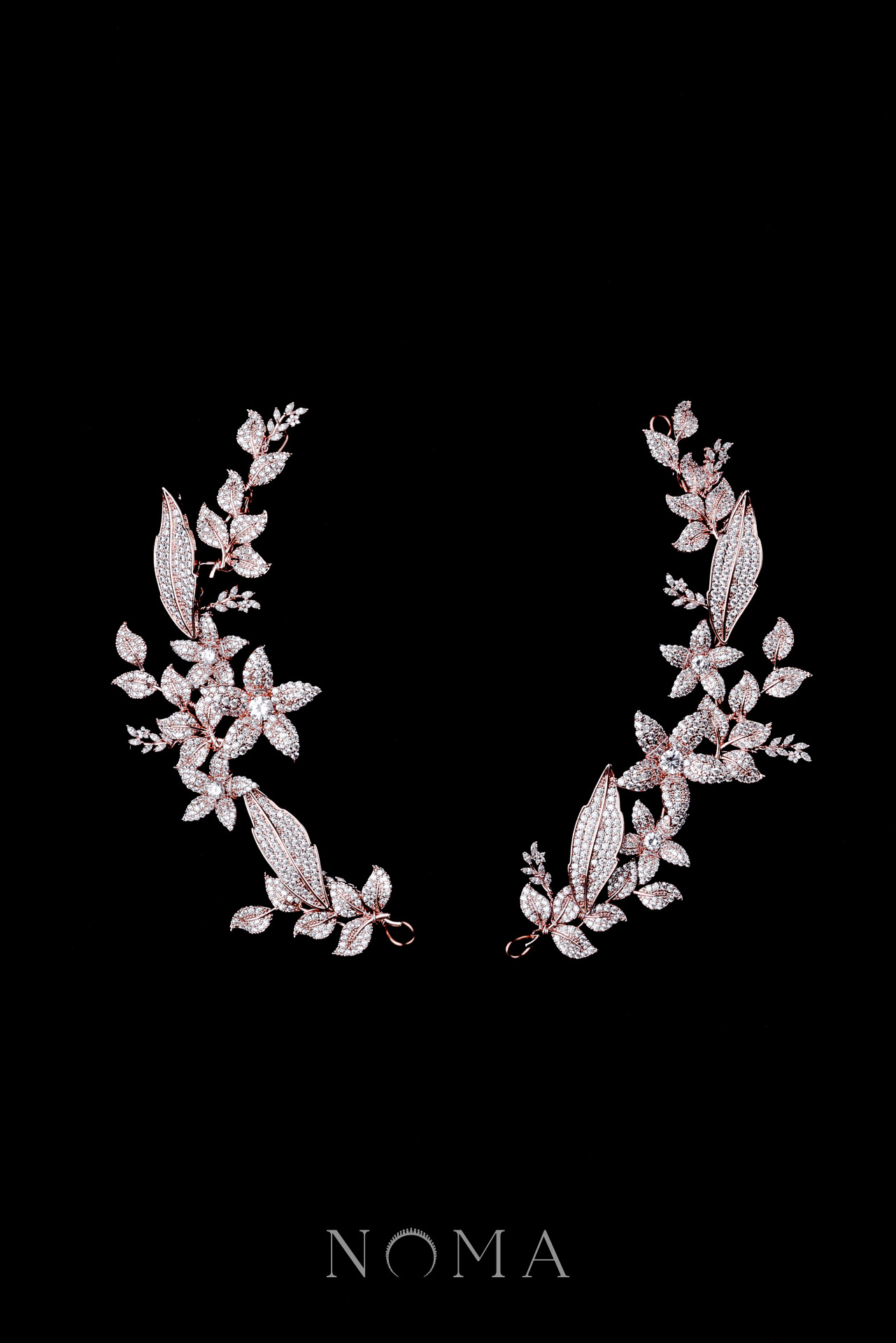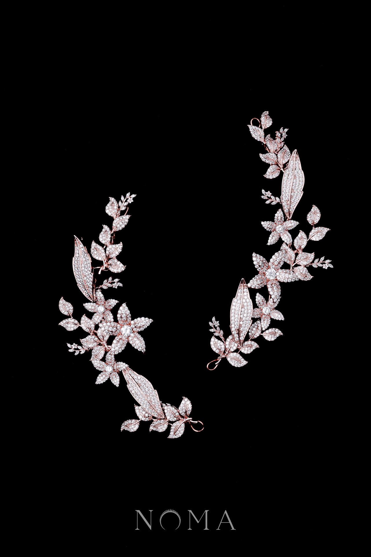 Paved Flower Garden Side Hairvine Pair – Rose Gold (1 pair)
