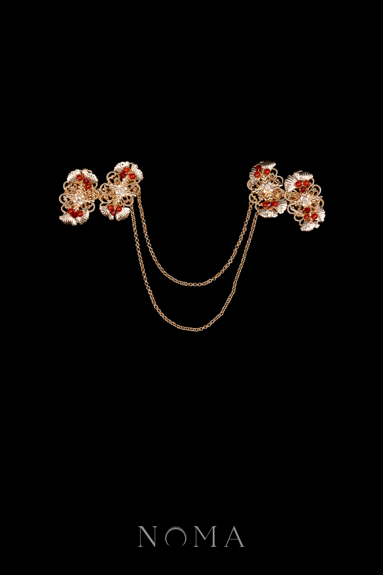 Dragon and Crane Heaven Hairvine Pair – Gold, Ruby (1 pair)