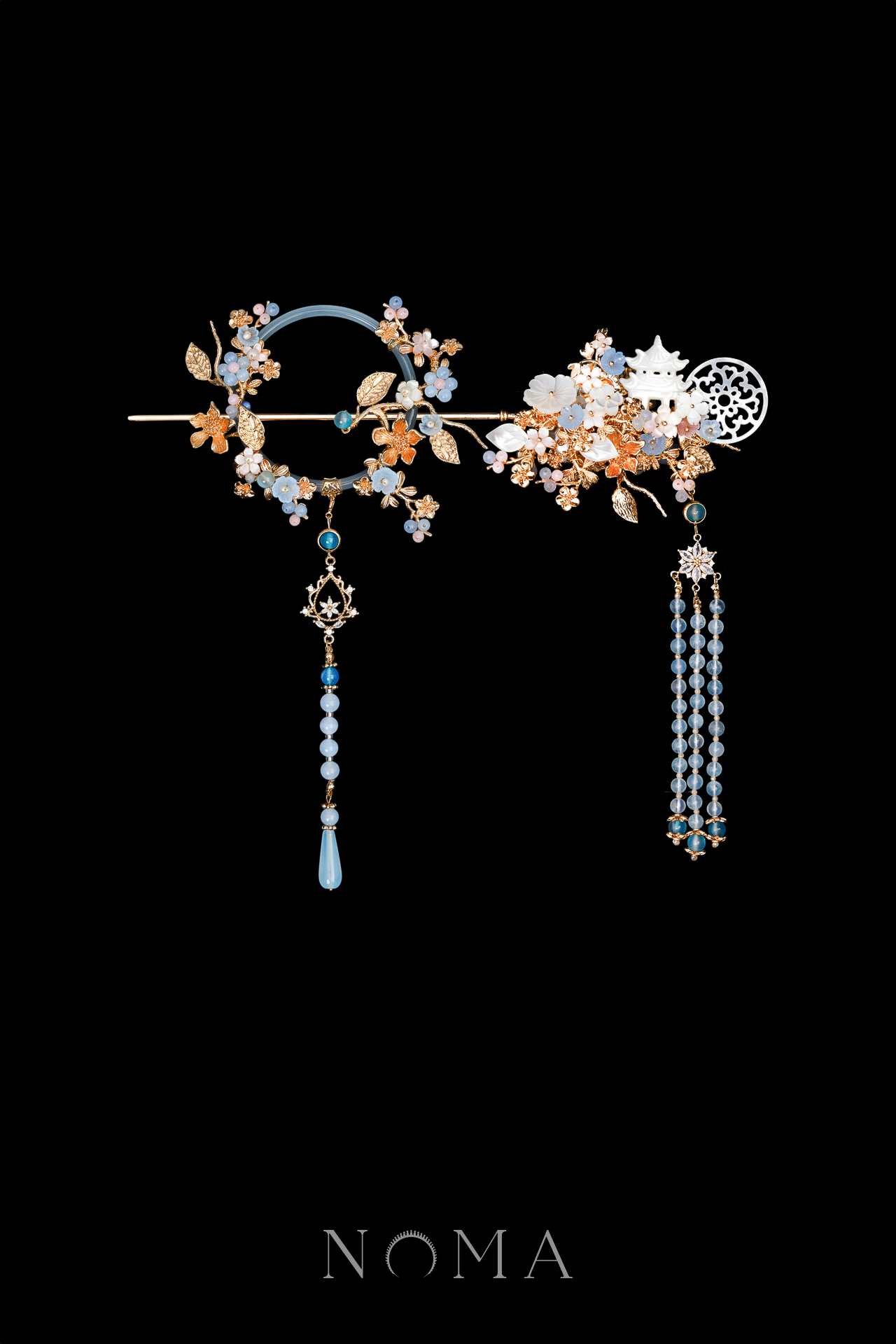 Floral Garden Knob Over the Moon Set – Gold, Blue (2 pcs)