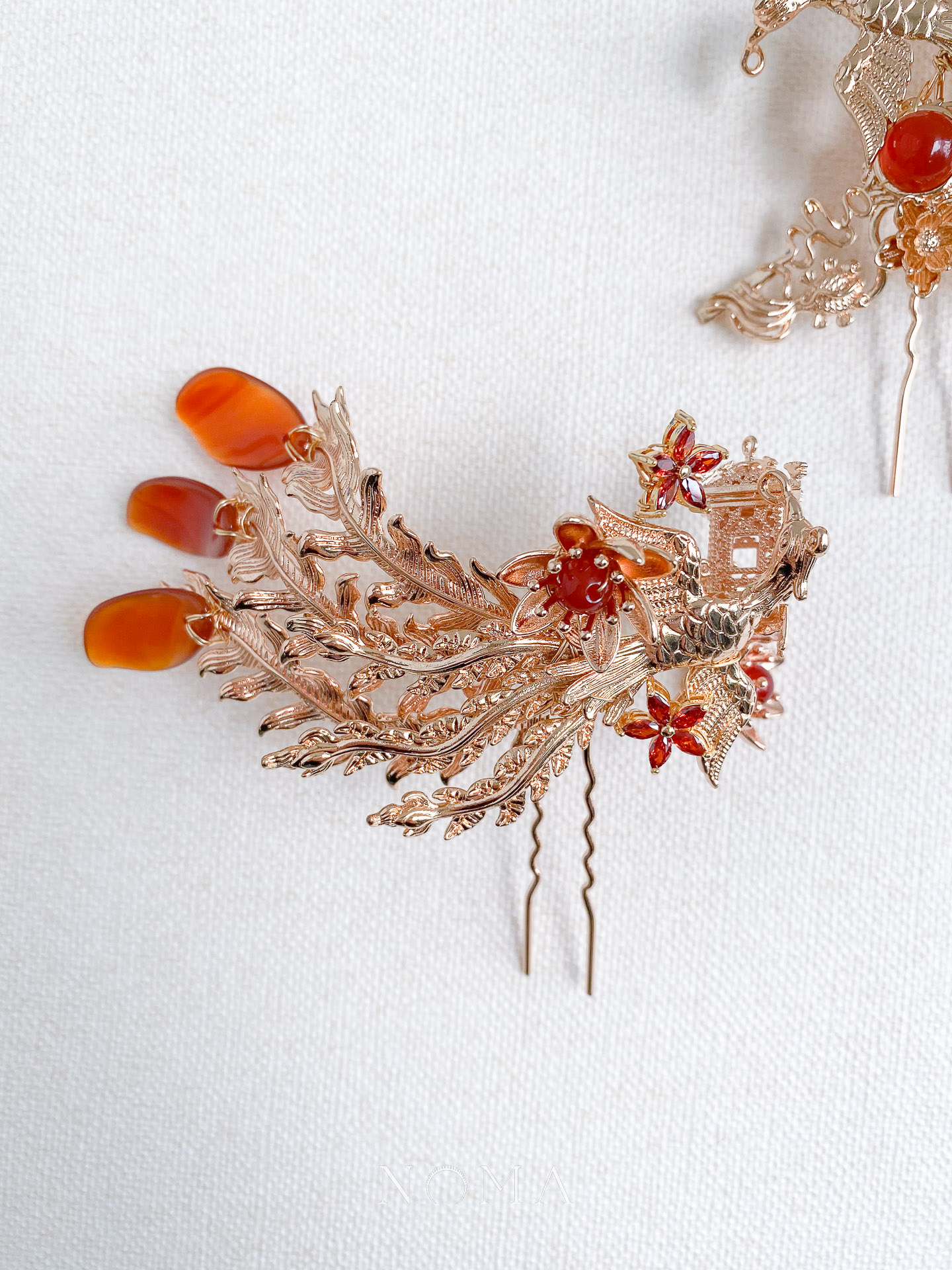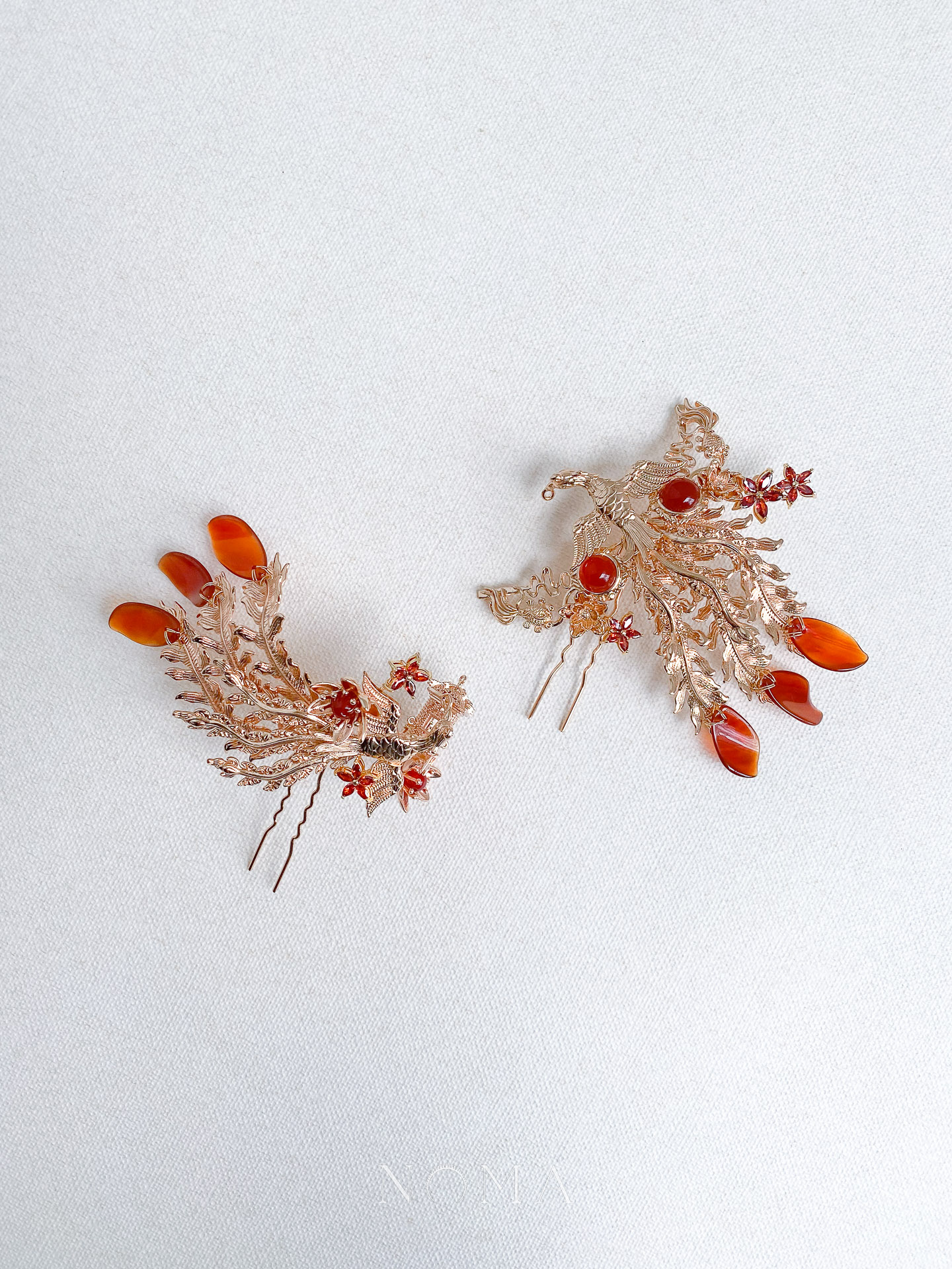 Flying Phoenix Tail Pagoda Koi Ponytail Hairpin Set – Gold, Red (2 pcs)
