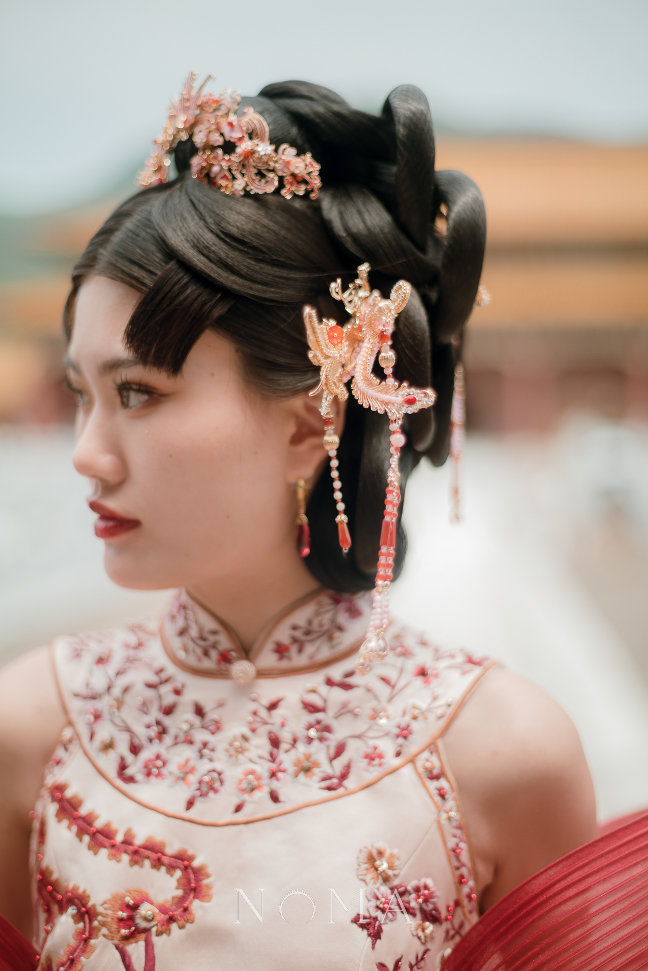 Colorful Phoenix Heart Long Hairpin – Gold, Pink (Left)