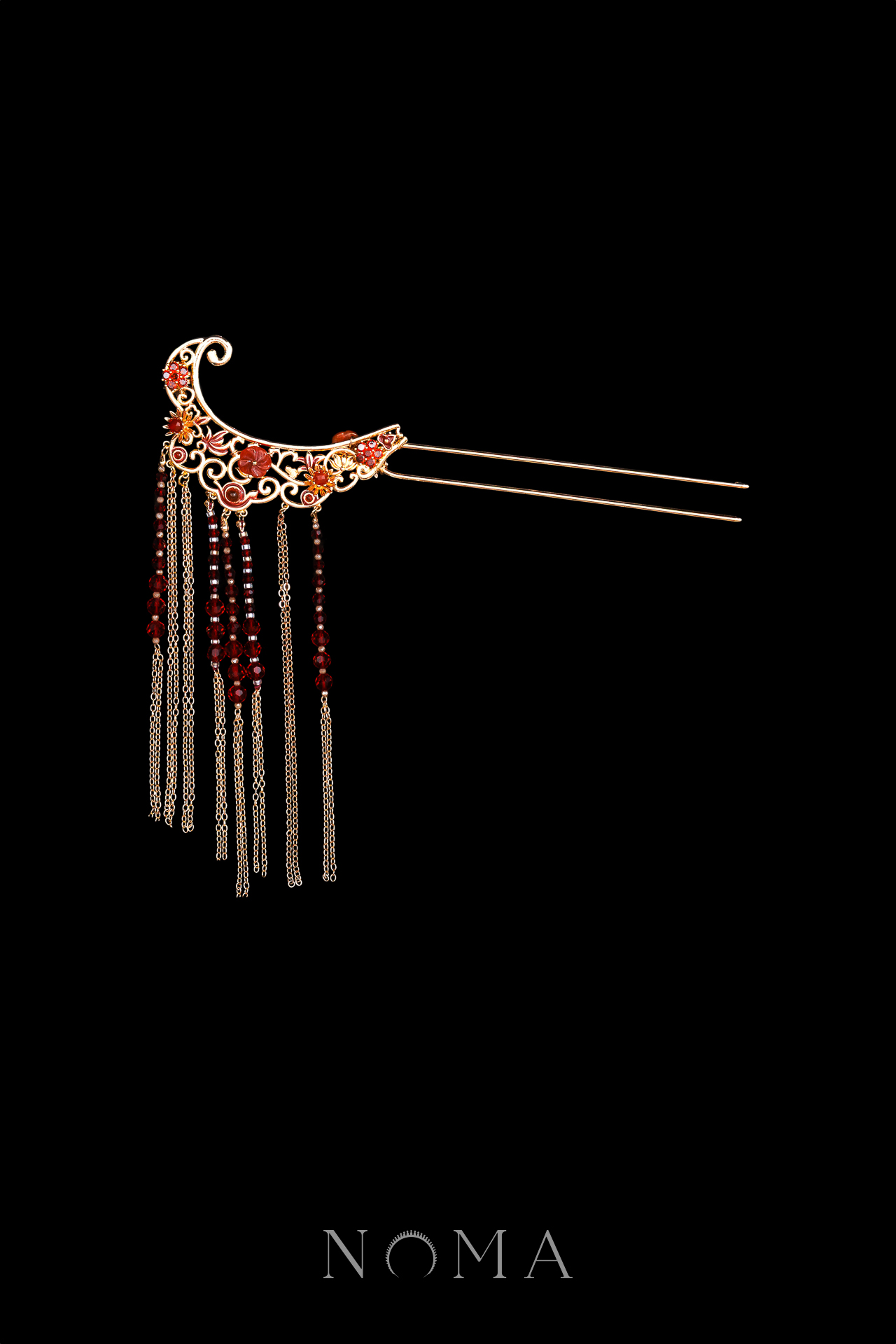 Regal Flower Curvy Hairpin – Gold, Ruby (Right)