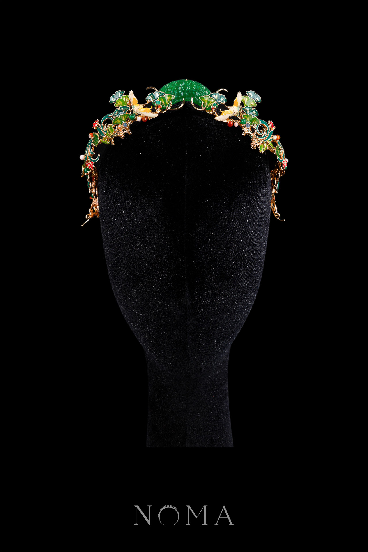 Colorful Jade Crane Ornamental Crown – Gold, Jade