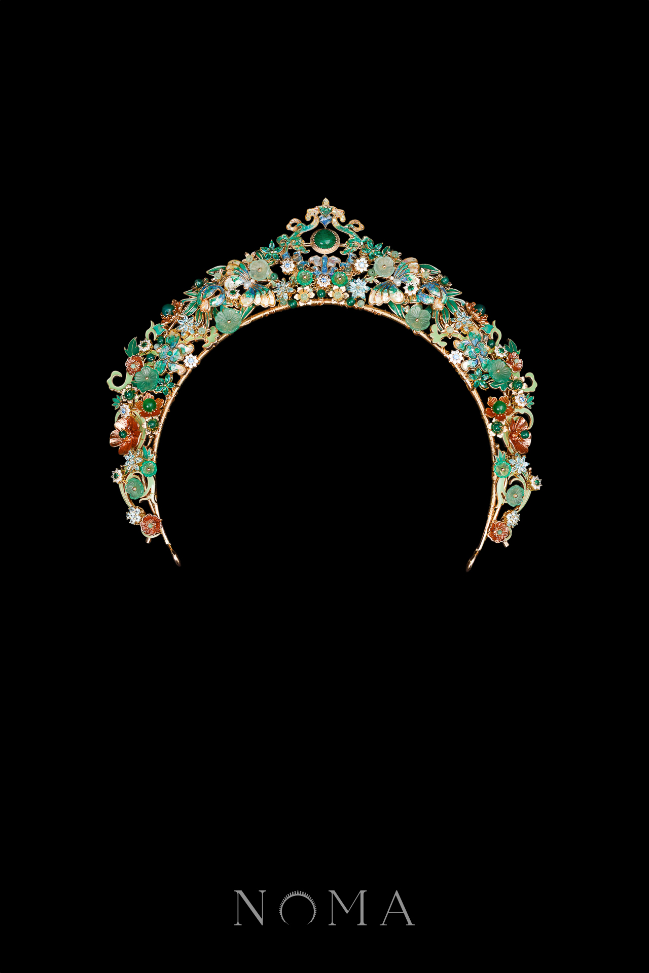 Colorful Mosaic Flying Butterfly Crown – Gold, Turquoise