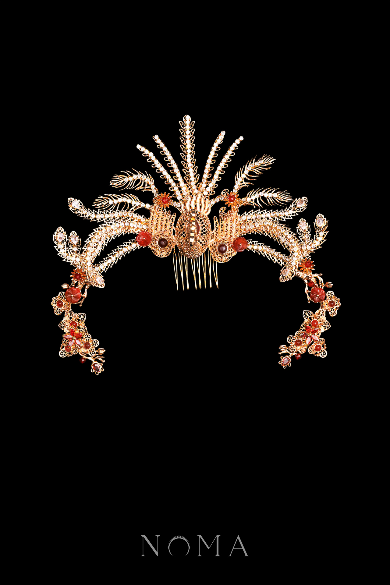Regal Filigree Phoenix Crown – Gold, Ruby