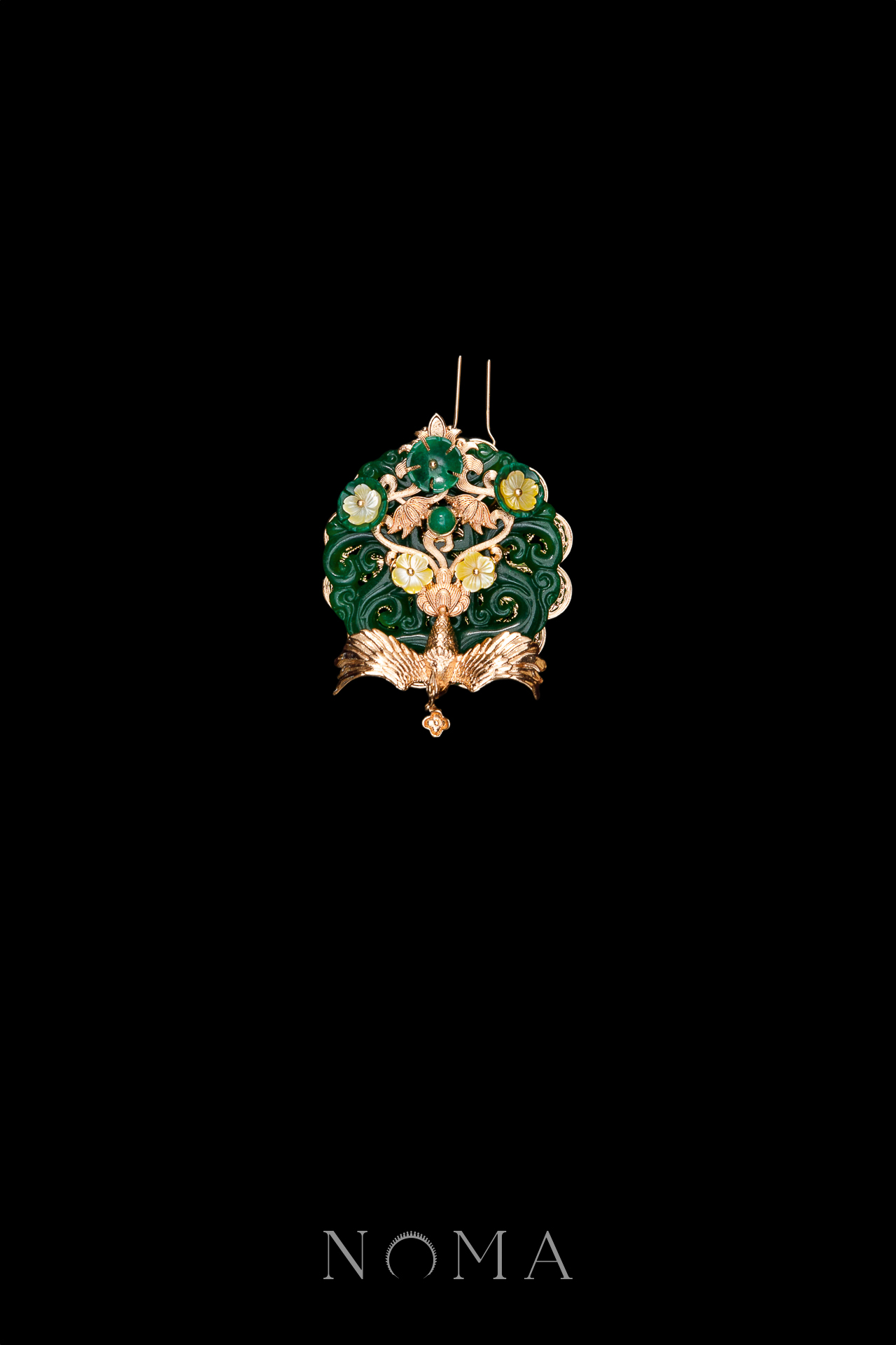 Carved Jade Phoenix Lush Middle – Gold, Jade