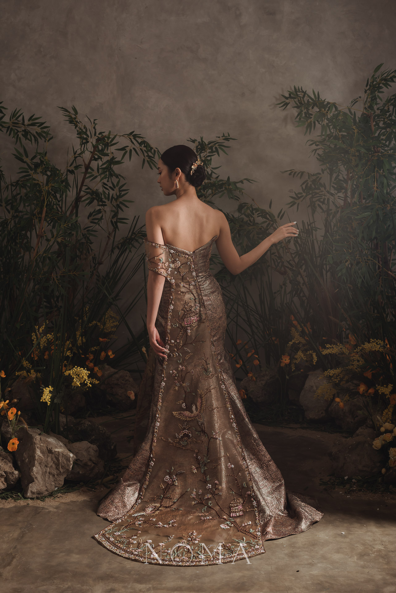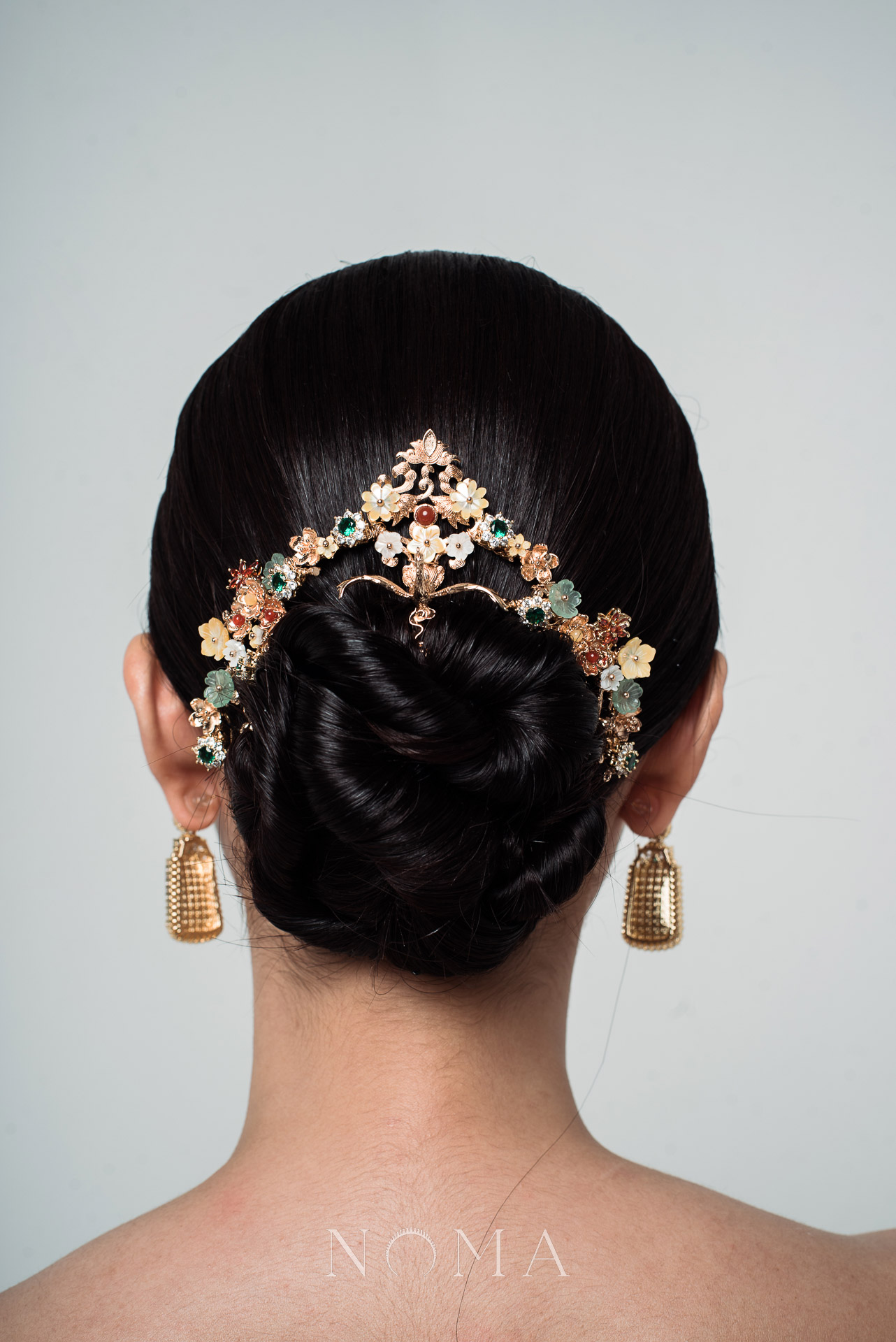 Curved Phoenix Lotus Floral Branches Hairvine – Gold