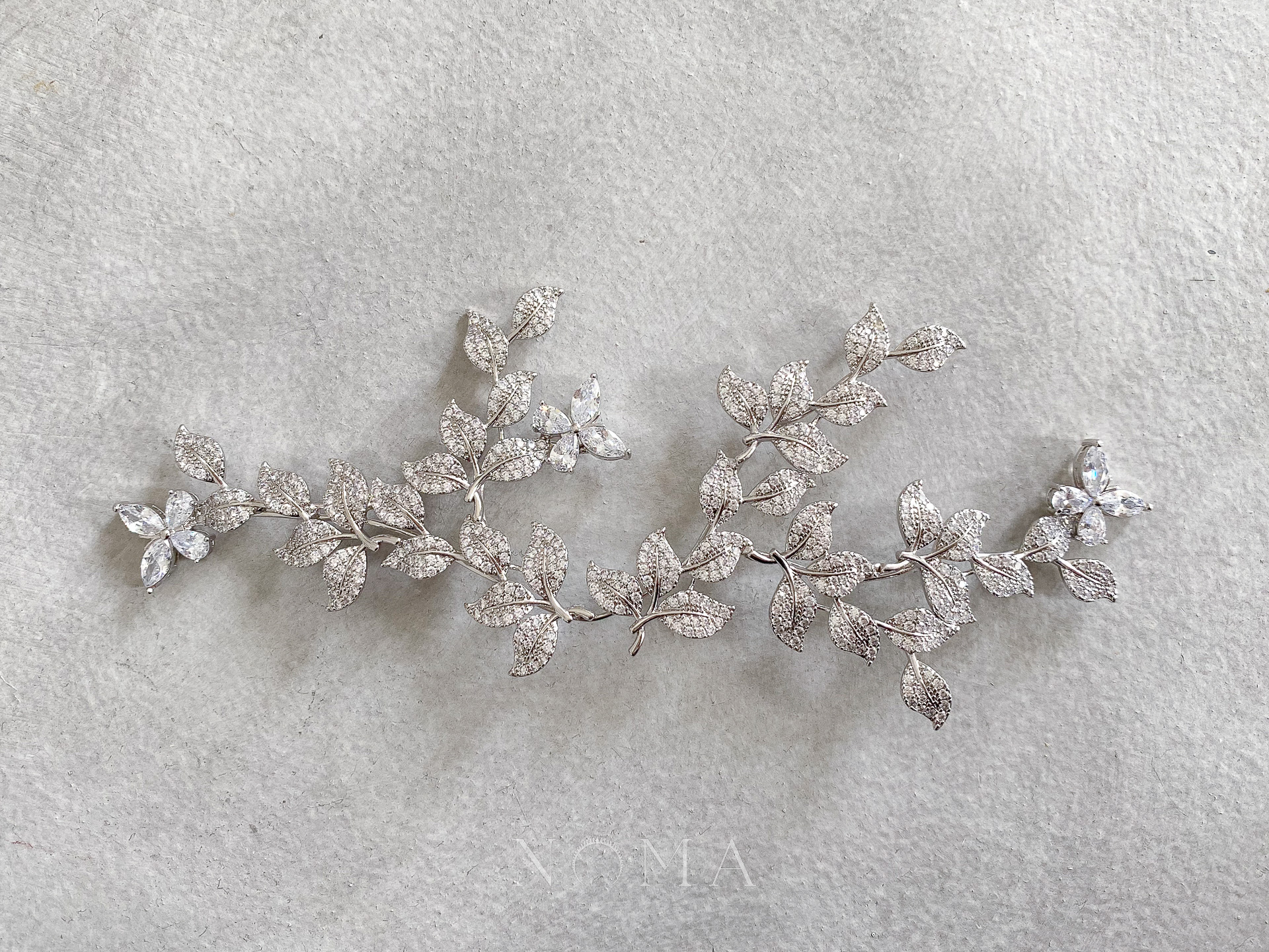 Paved Twigs Butterfly Hairvine/Brooch – Rhodium White Gold