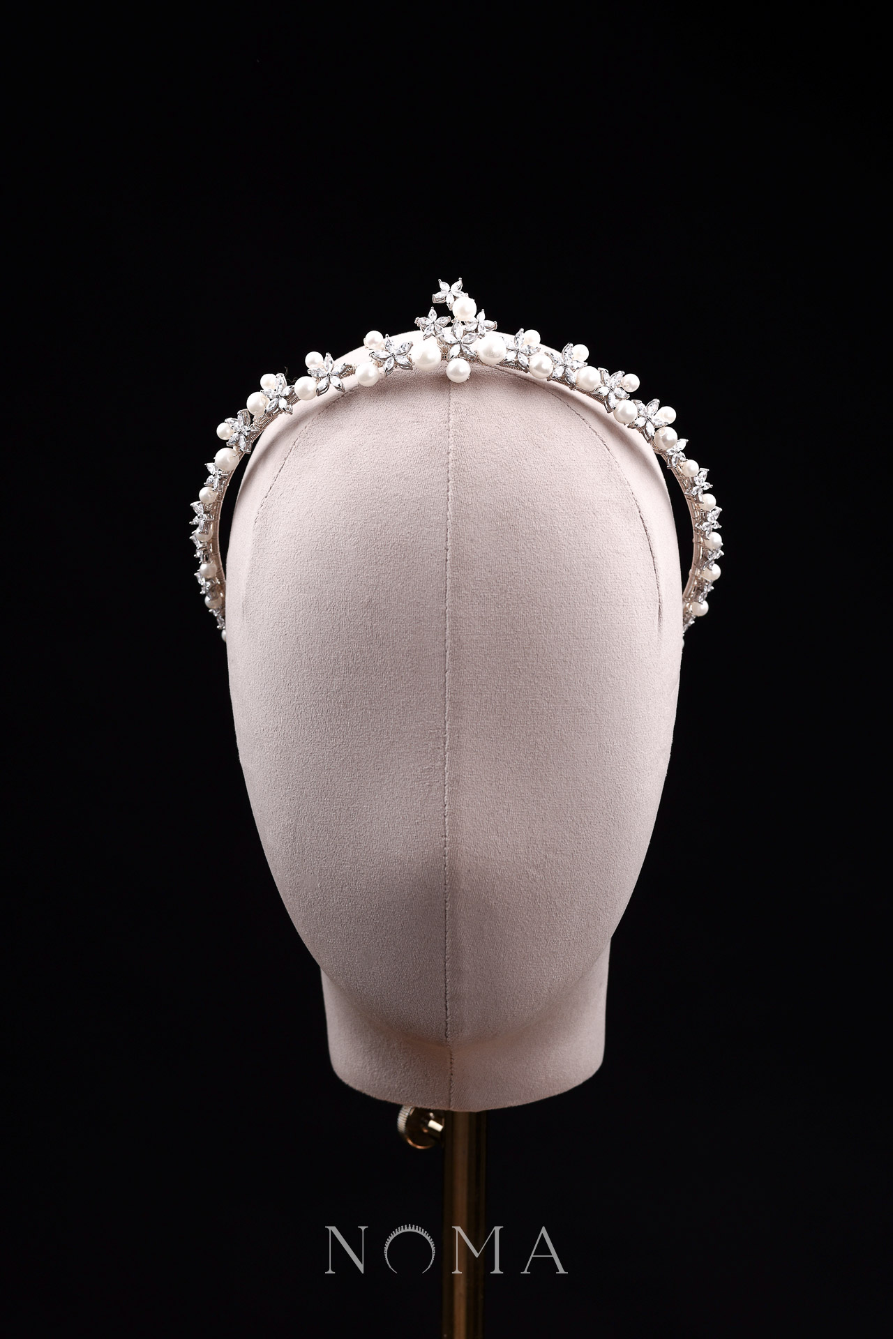 Floraline Pearl Crown – Rhodium White Gold, White Pearl