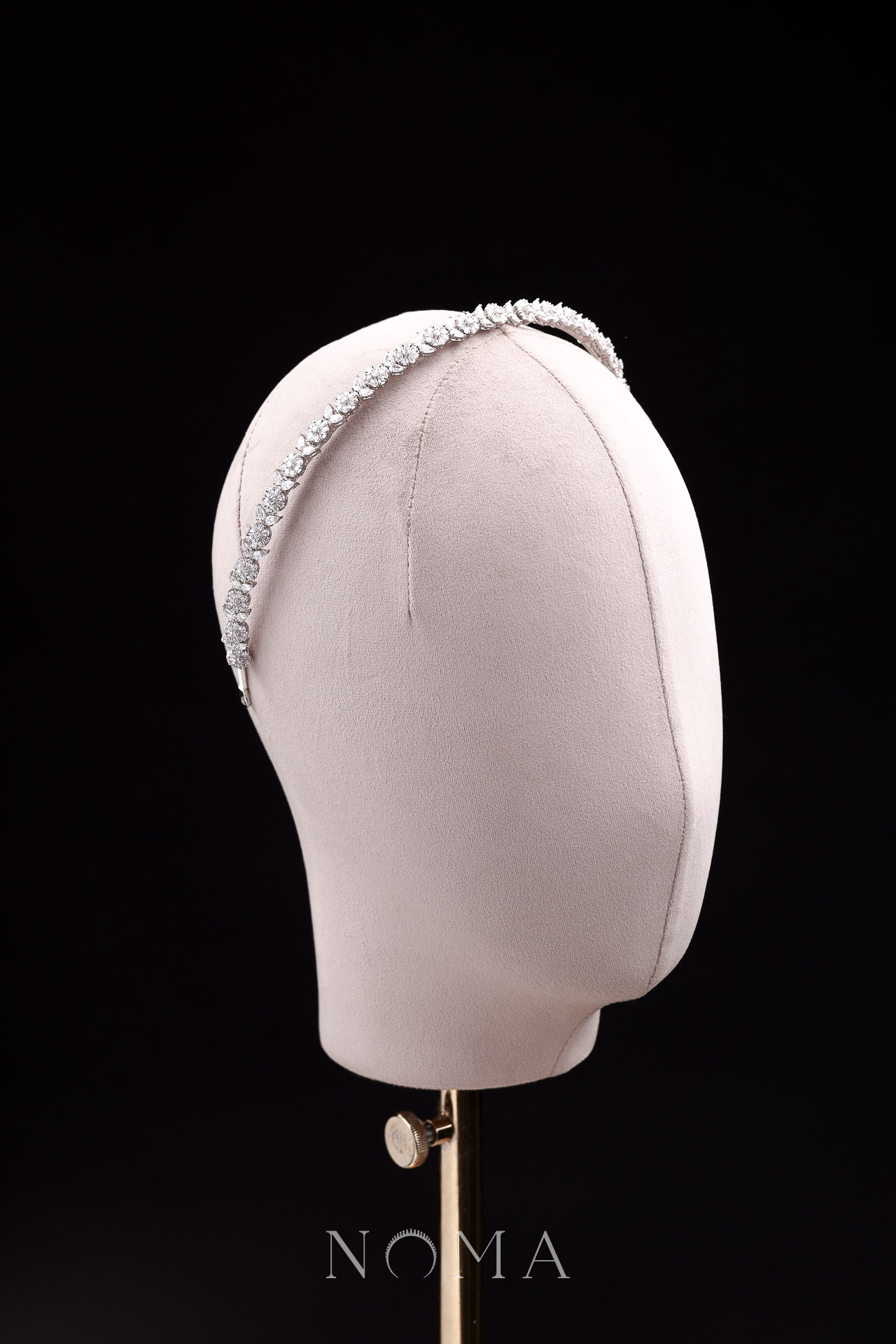 Floral Duo Pear Leaf Headband – Rhodium White Gold
