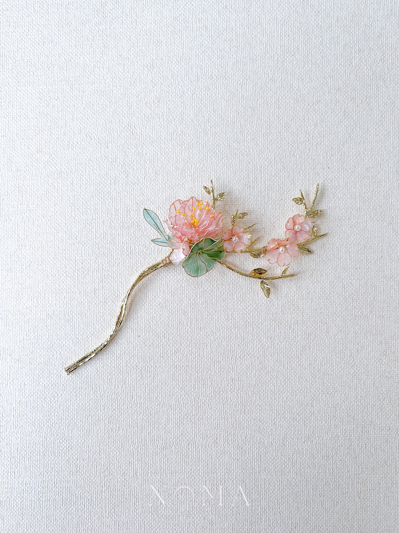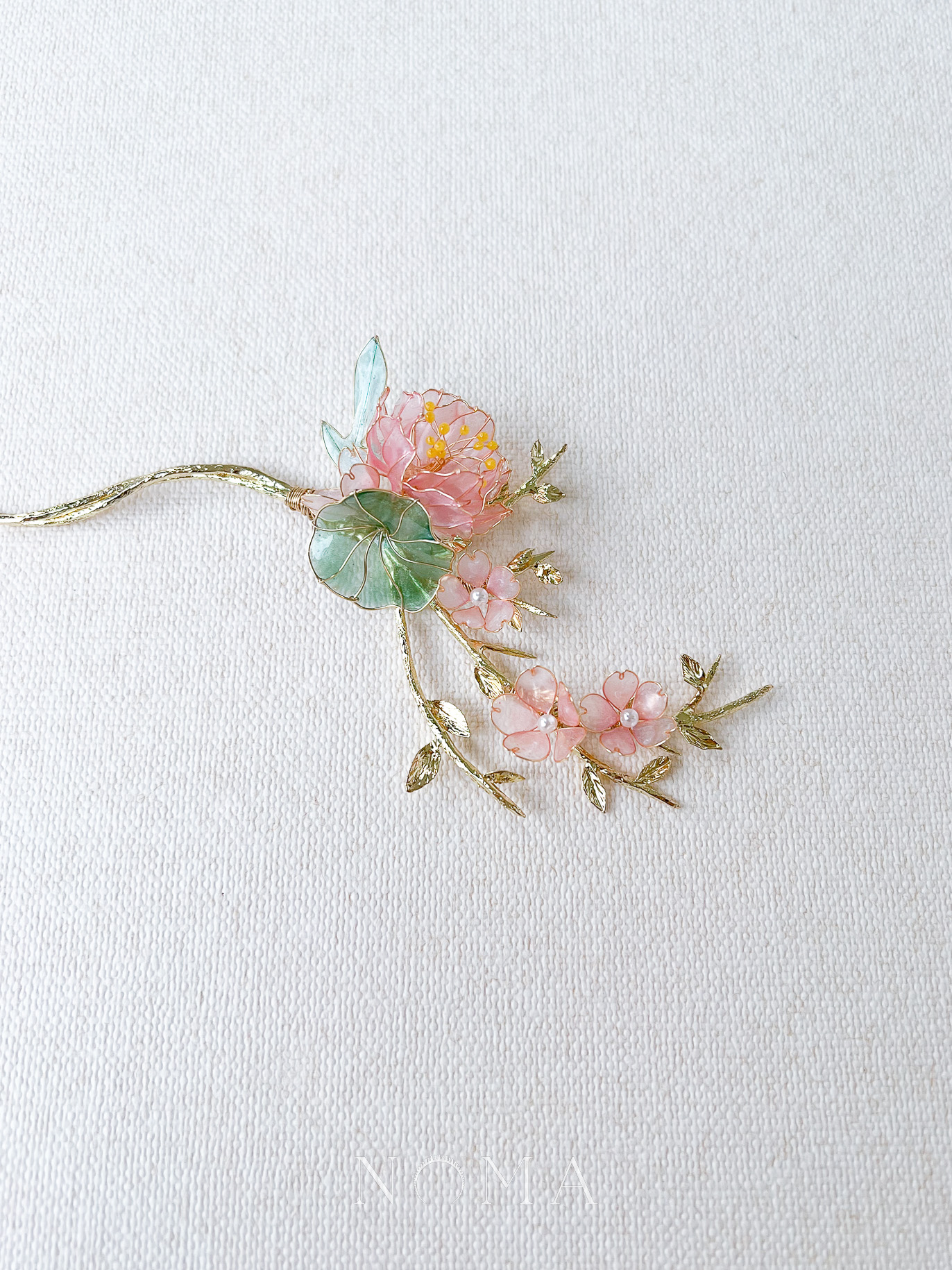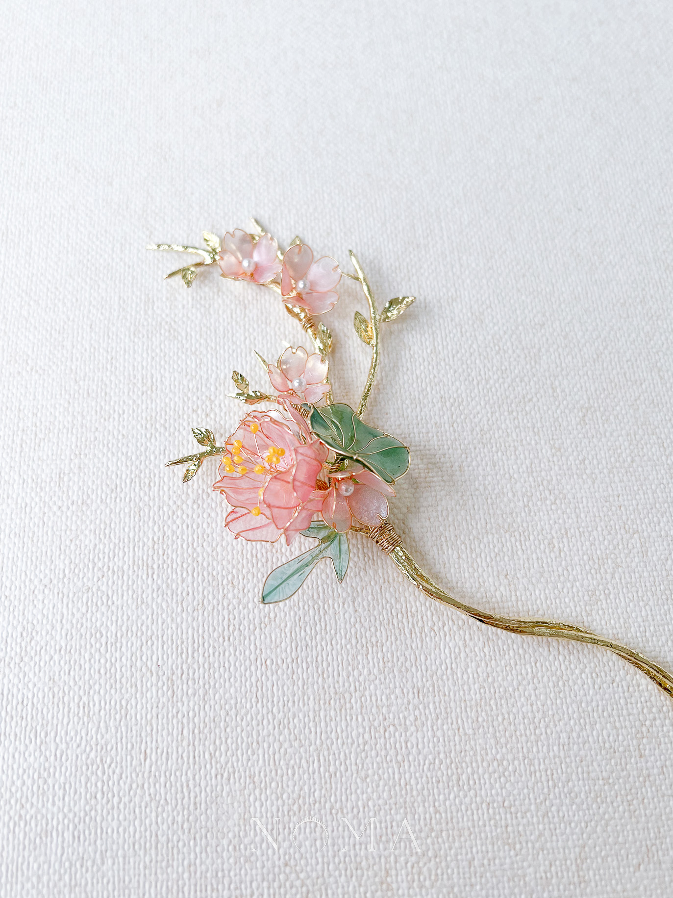 LR Scenery Blushing Blooms Hairpin – 18k Yellow Gold, Pink