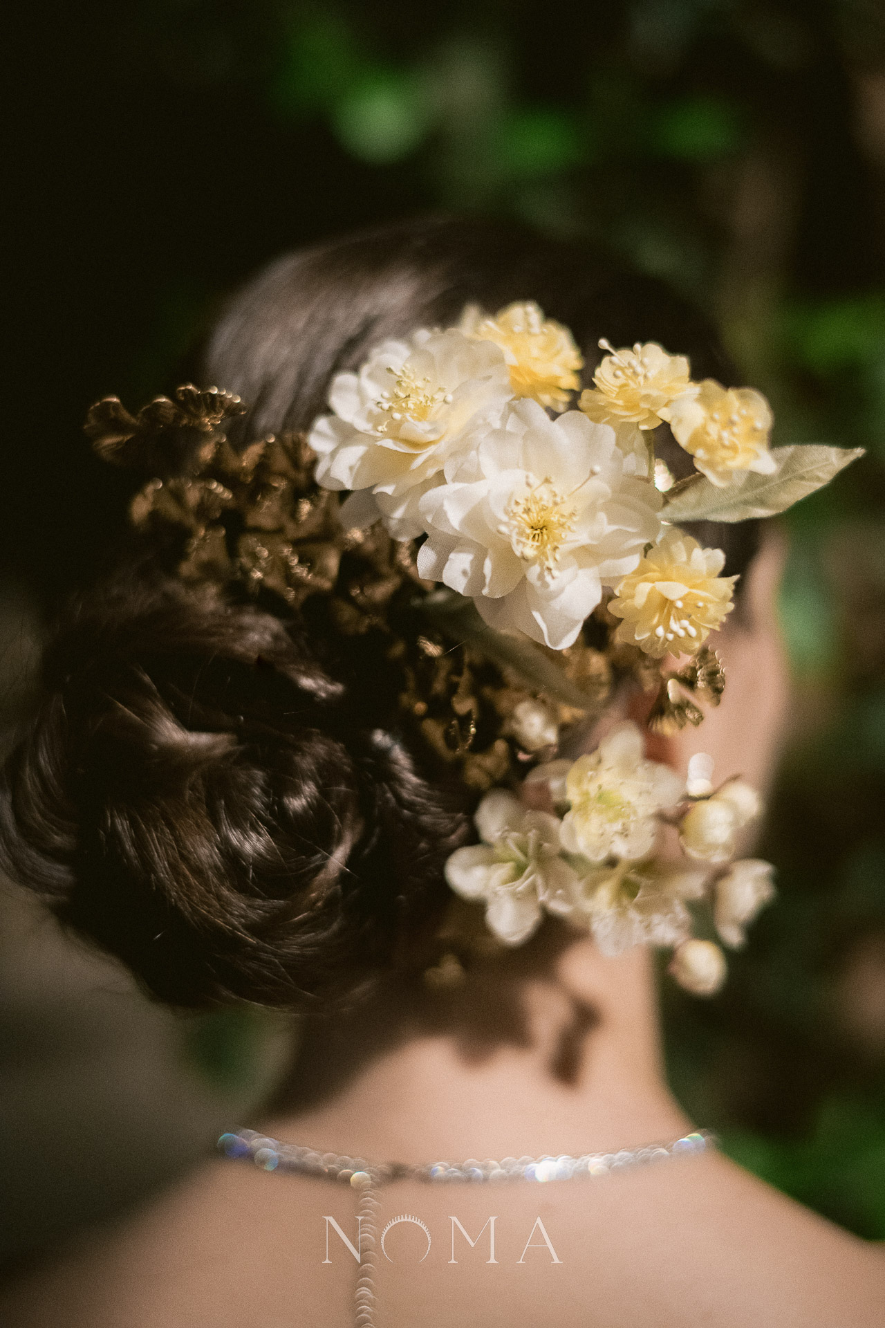 Made from Japanese silk hardened with a special formulation, hand-cut one by one to create floral petals, before being molded using a hot iron to create a lifelike flower shape and assembled together to form flowers.