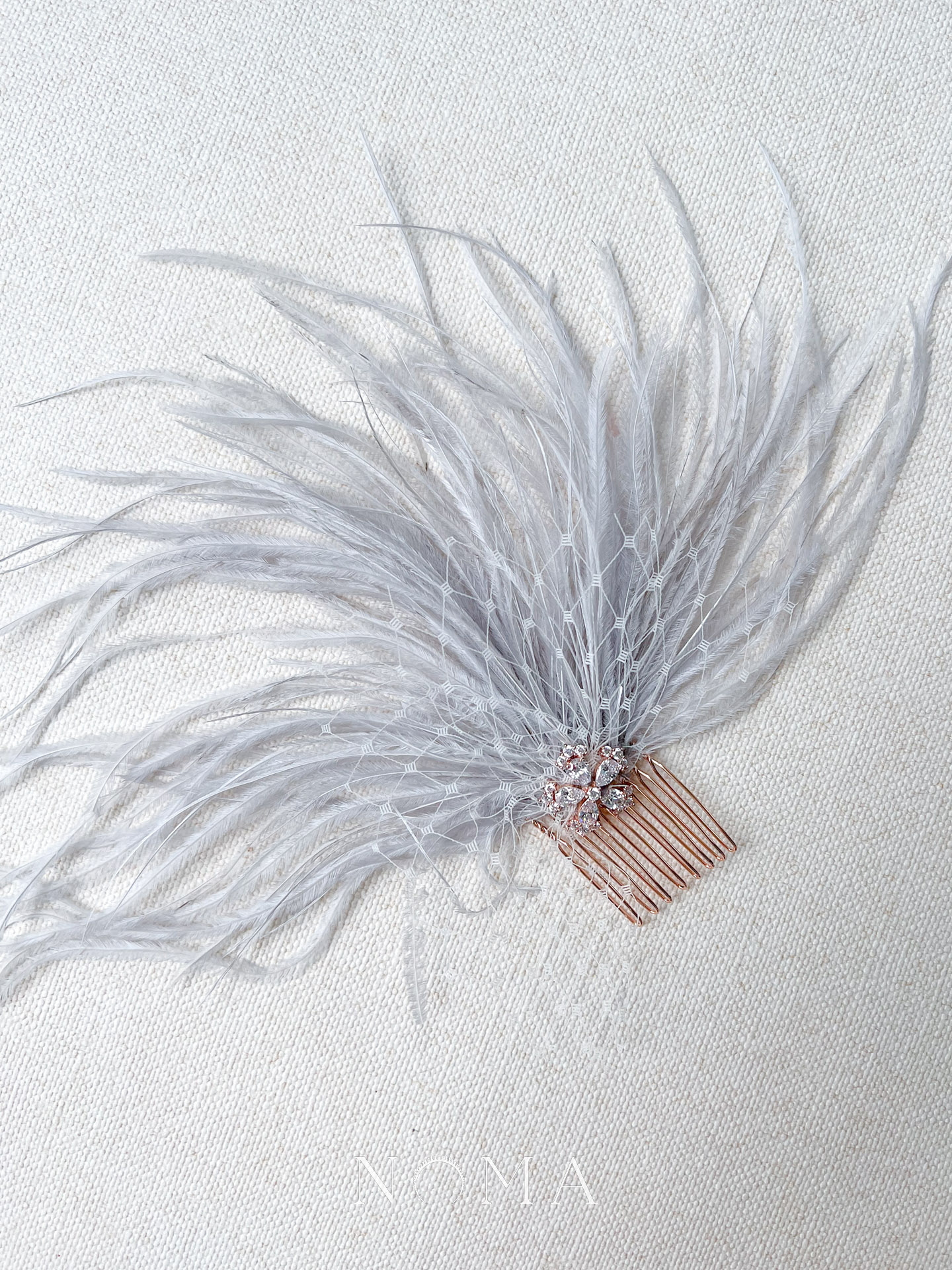 Grey and Pink Feather Side Haircomb – Rose Gold, Grey