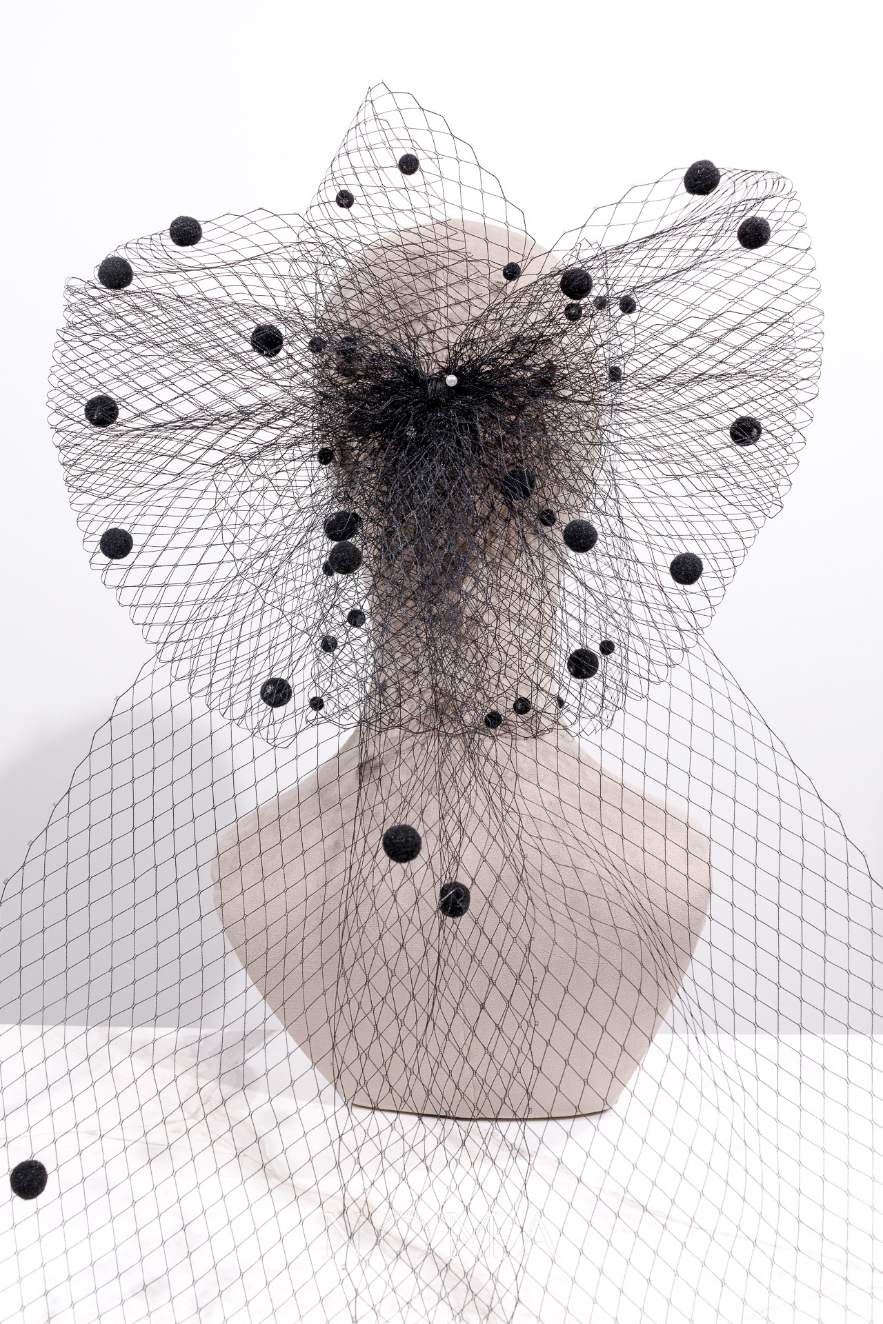 Pompous Veil and Bow Set – White Gold, Black (2 pcs)
