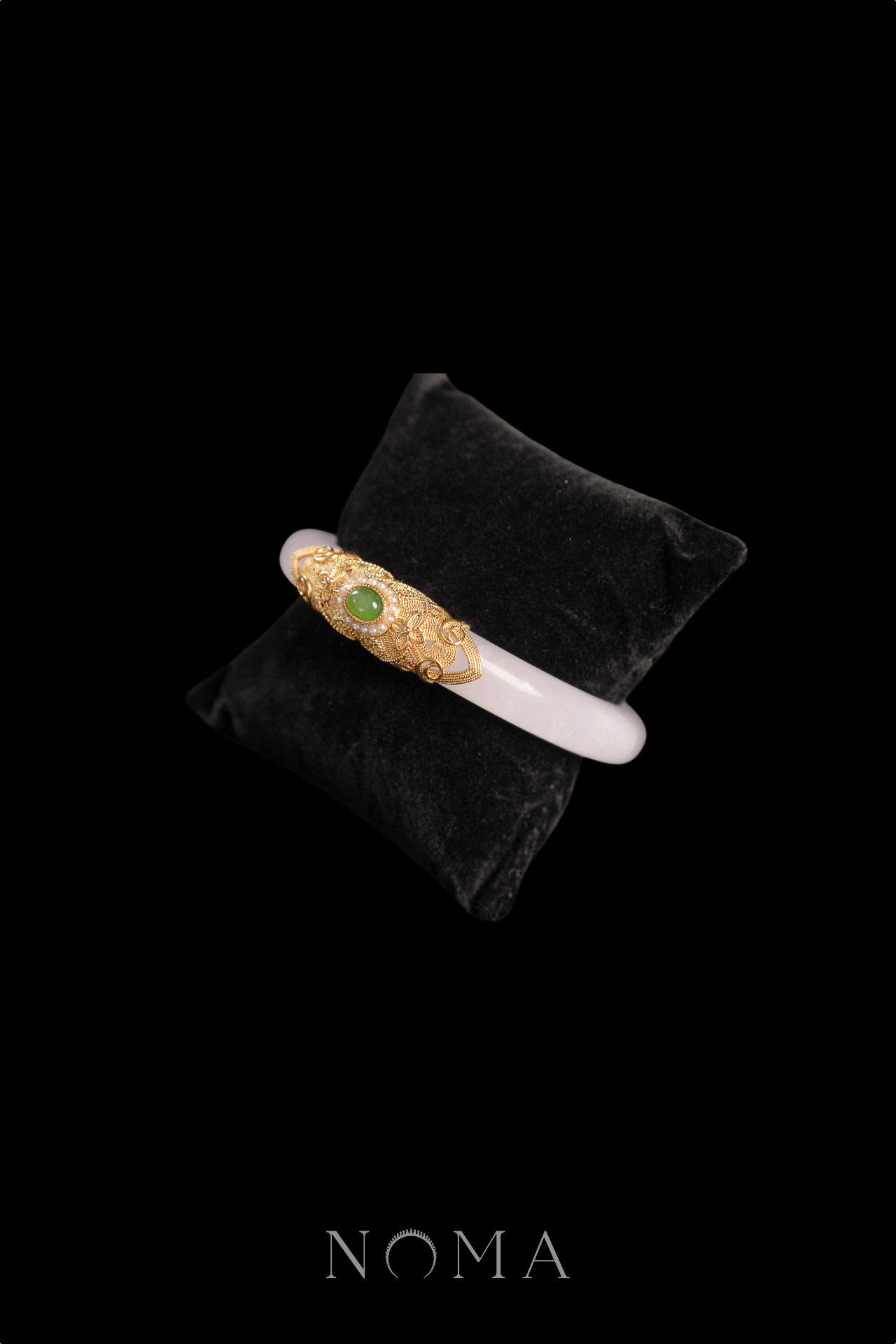 Half Heritage Ornamental Jade Bangle – Doff Gold, Pink Jade