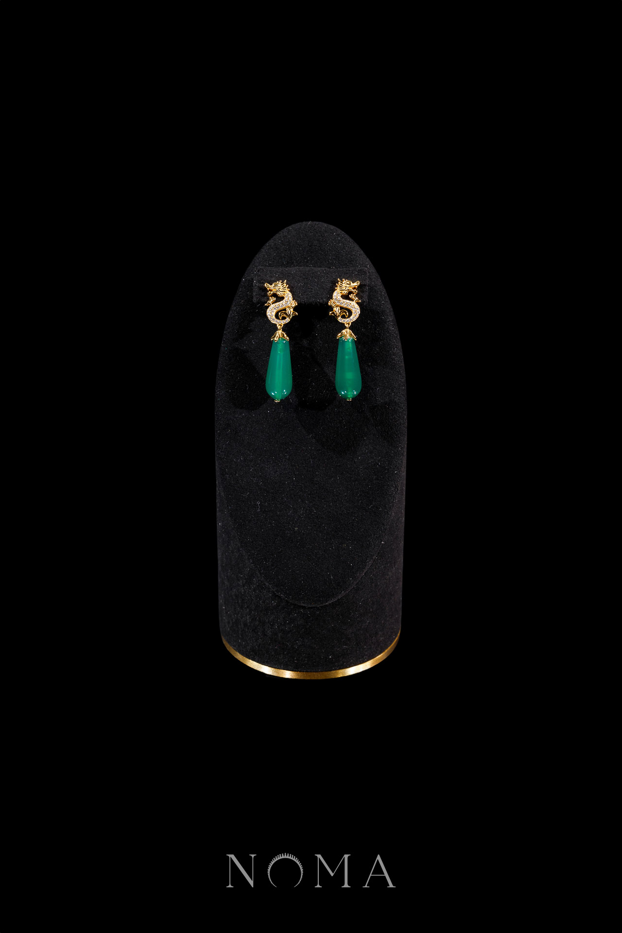 Dragon Jewel Pear Jade Earrings – 18k Yellow Gold, Jade
