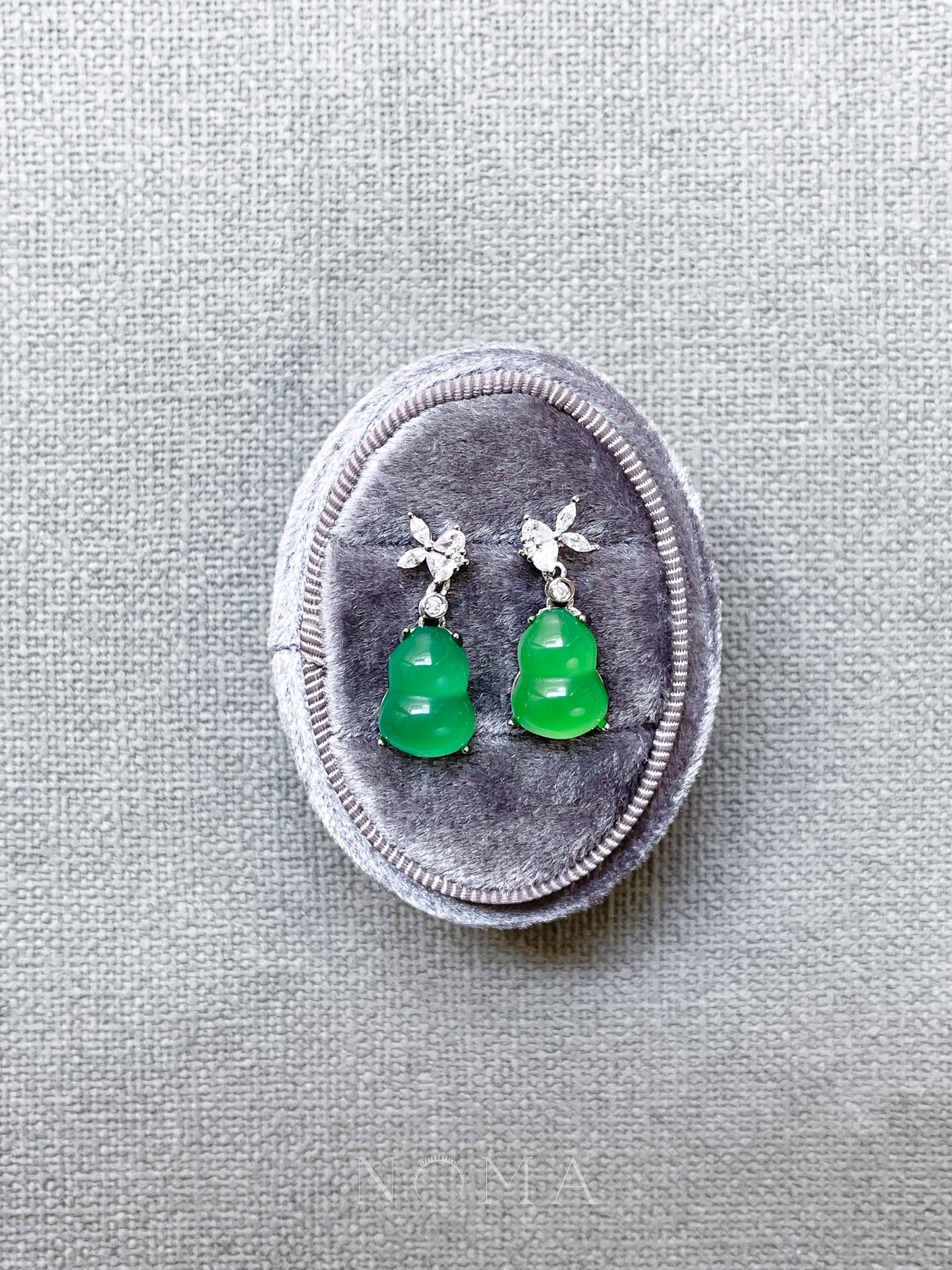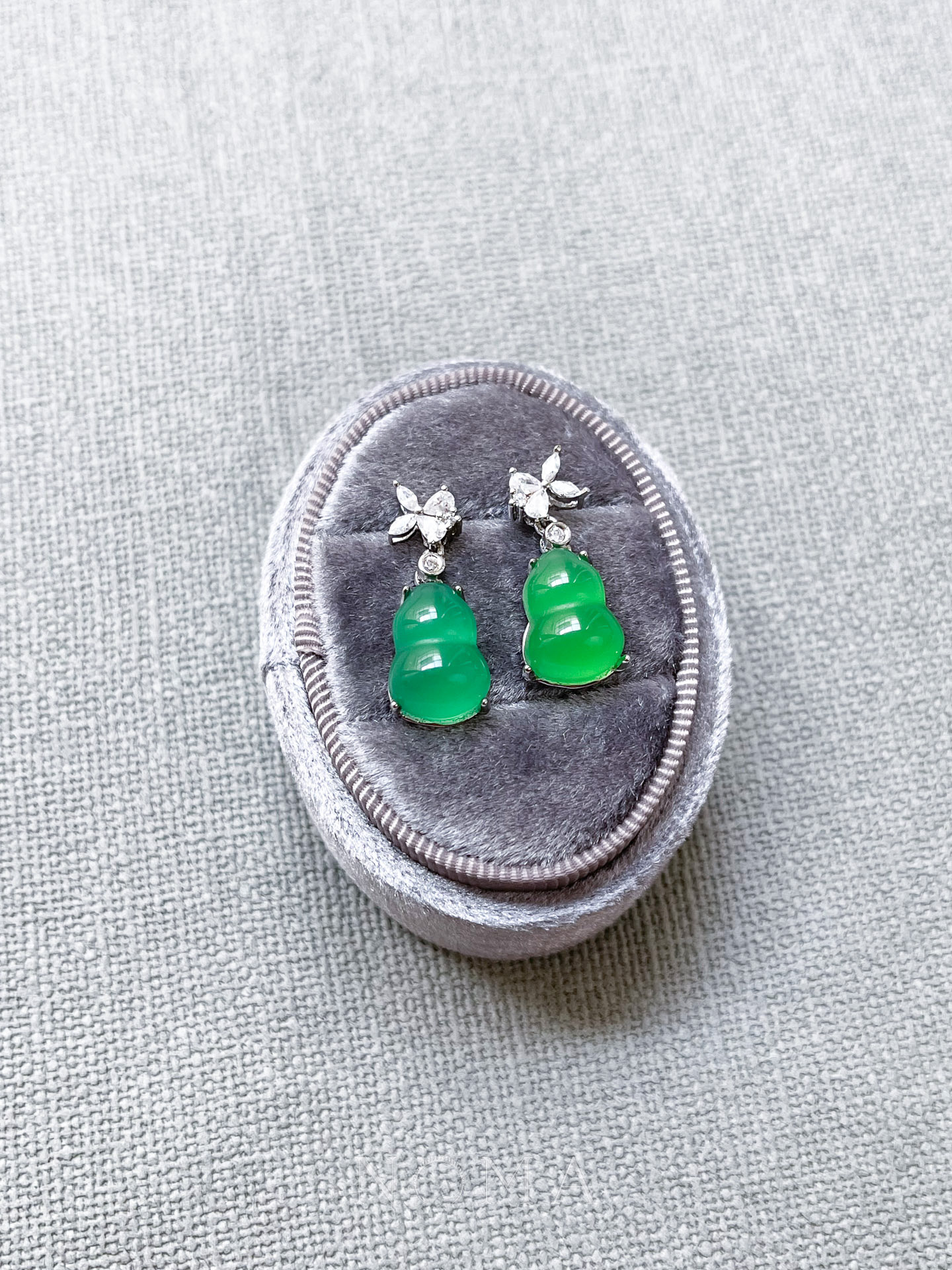 Superior Gourd Jade Earrings – Rhodium White Gold, Jade