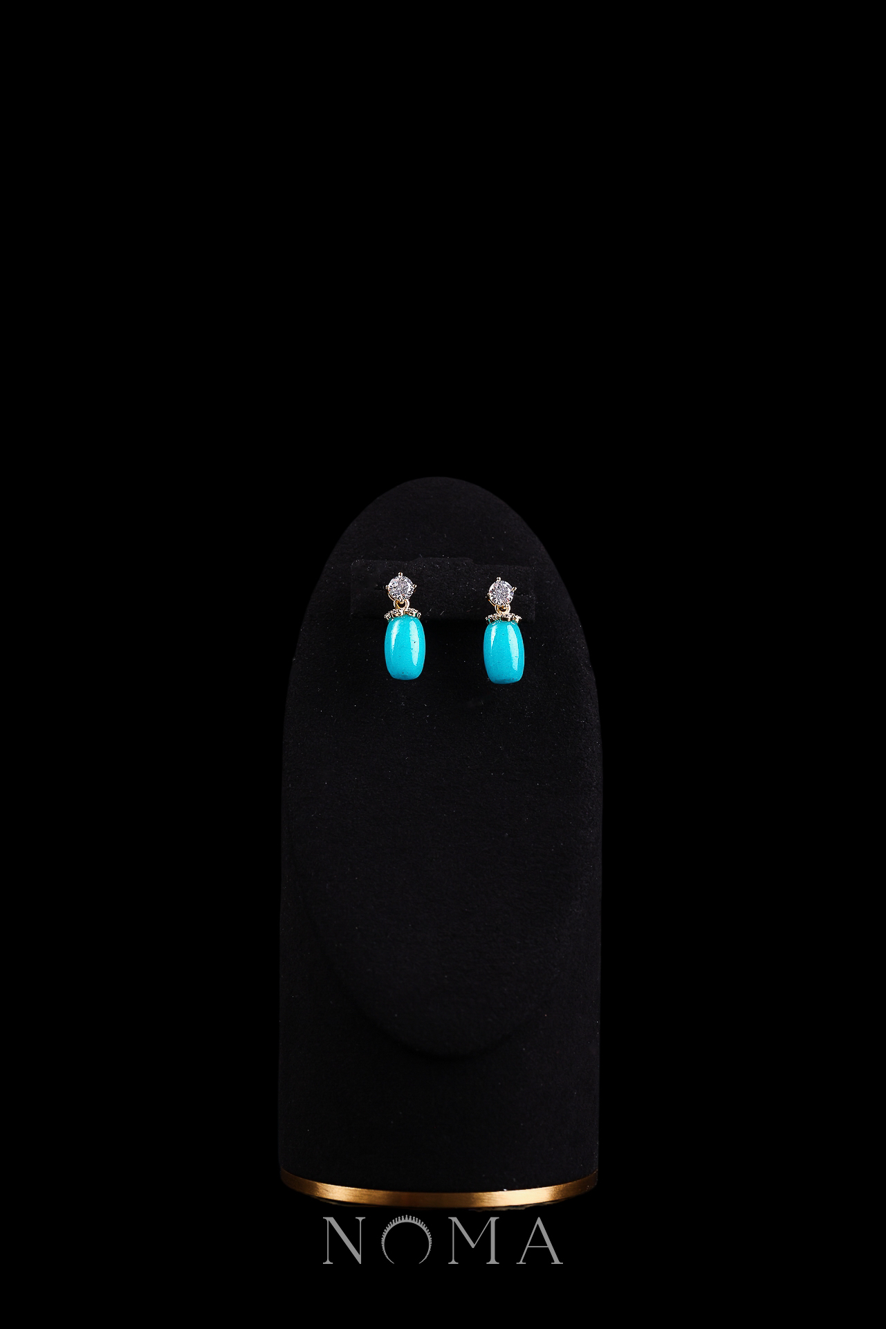 Tubular Jade Small 8×12 mm with Round Solitaire Earrings – 18k Yellow Gold, Turquoise
