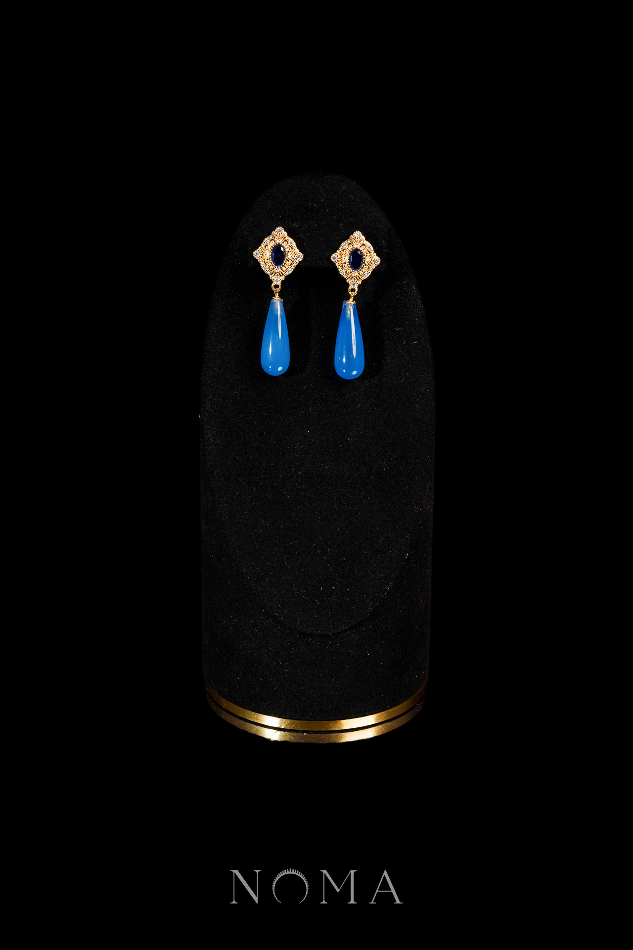 Vintage Frame Pear Jade Earrings – 18k Yellow Gold, Blue Jade