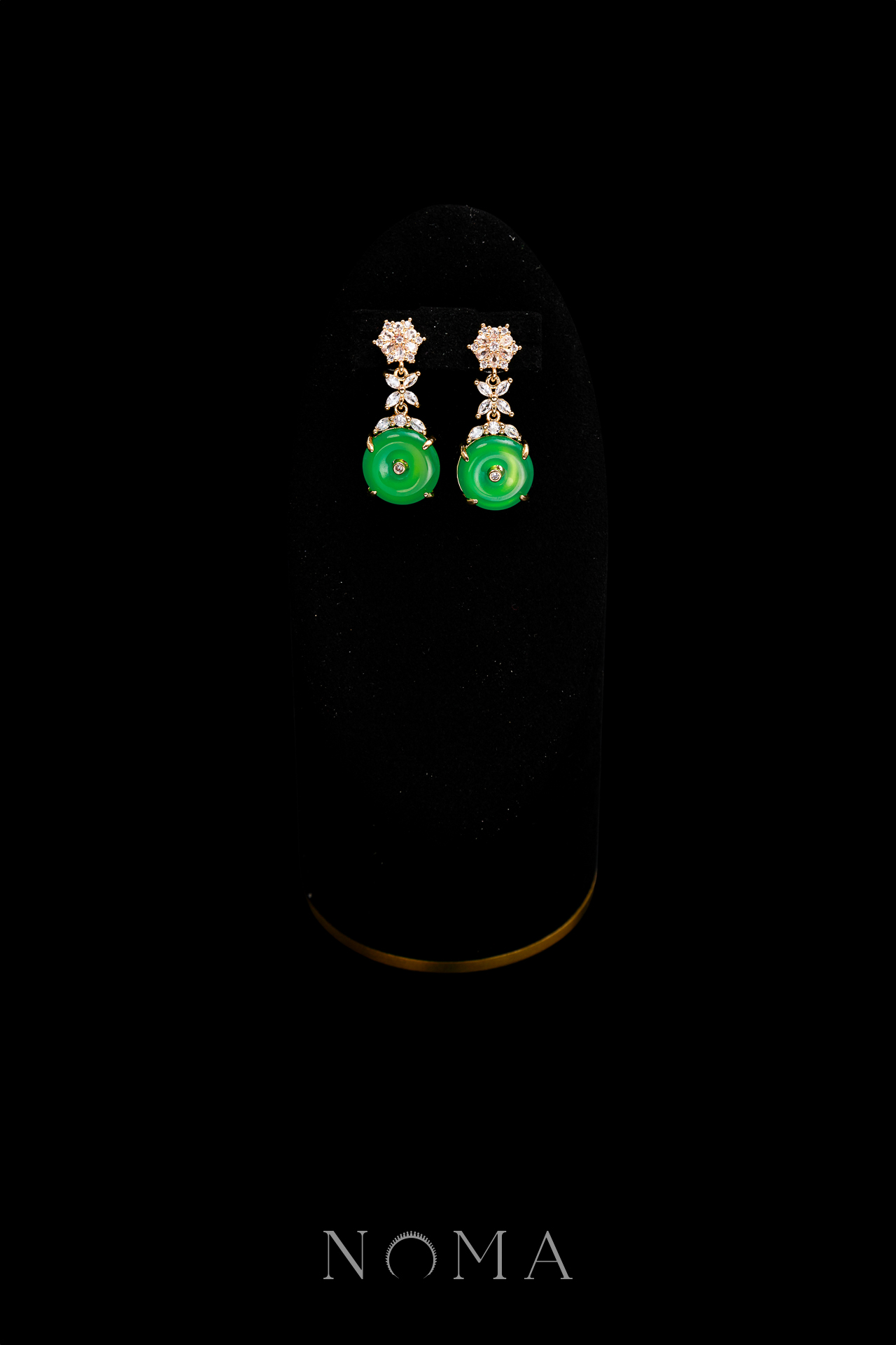 Superior Hexa Floral Donut Jade Earrings – 18k Yellow Gold, Jade