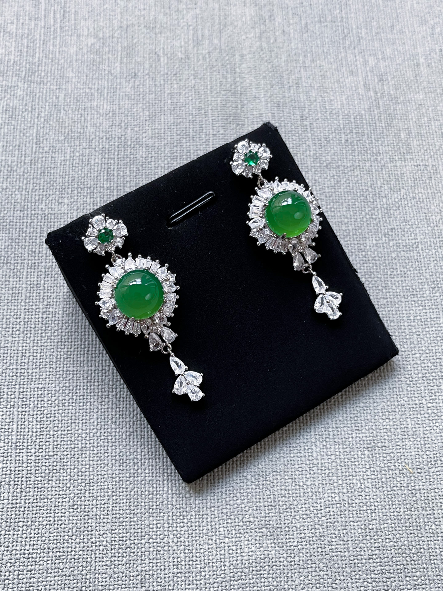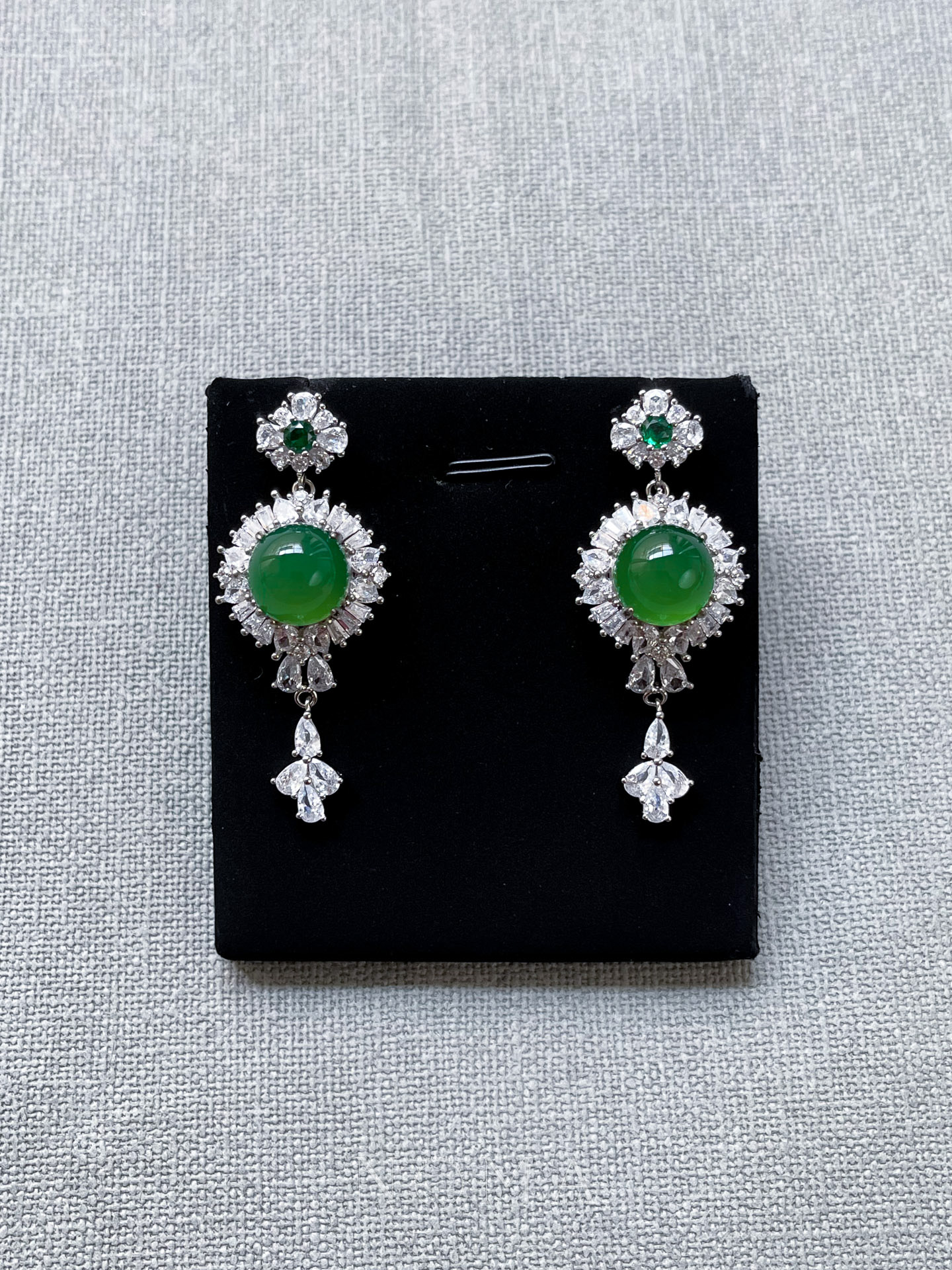 Superior Round Jade T Arrangement Earrings – Rhodium White Gold, Jade