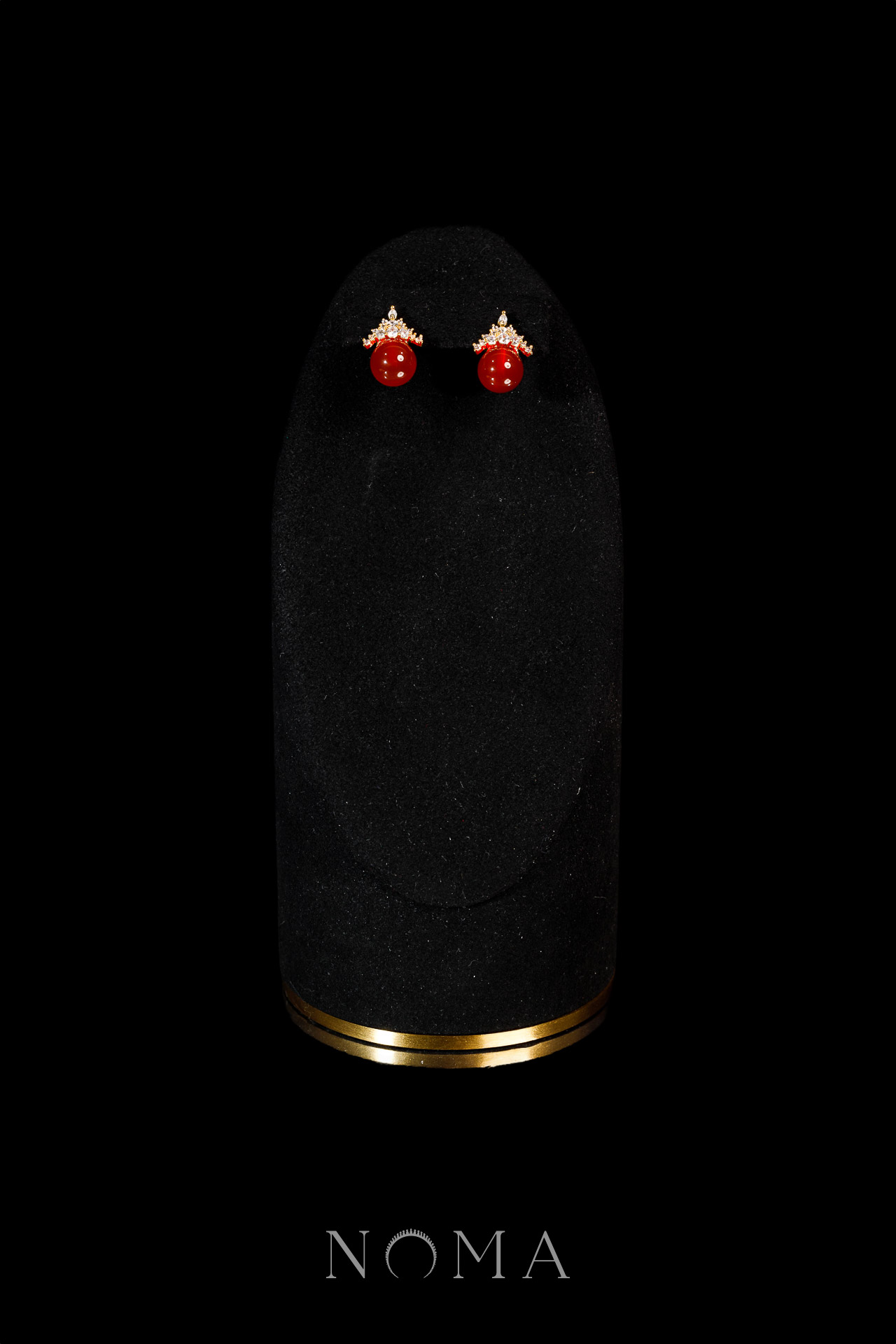 Cascading Crown Earrings – 18k Yellow Gold, Red Jade