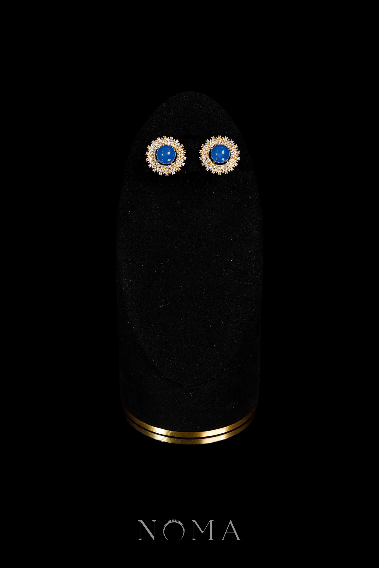 Intricate Halo Earrings – 18k Yellow Gold, Blue Jade