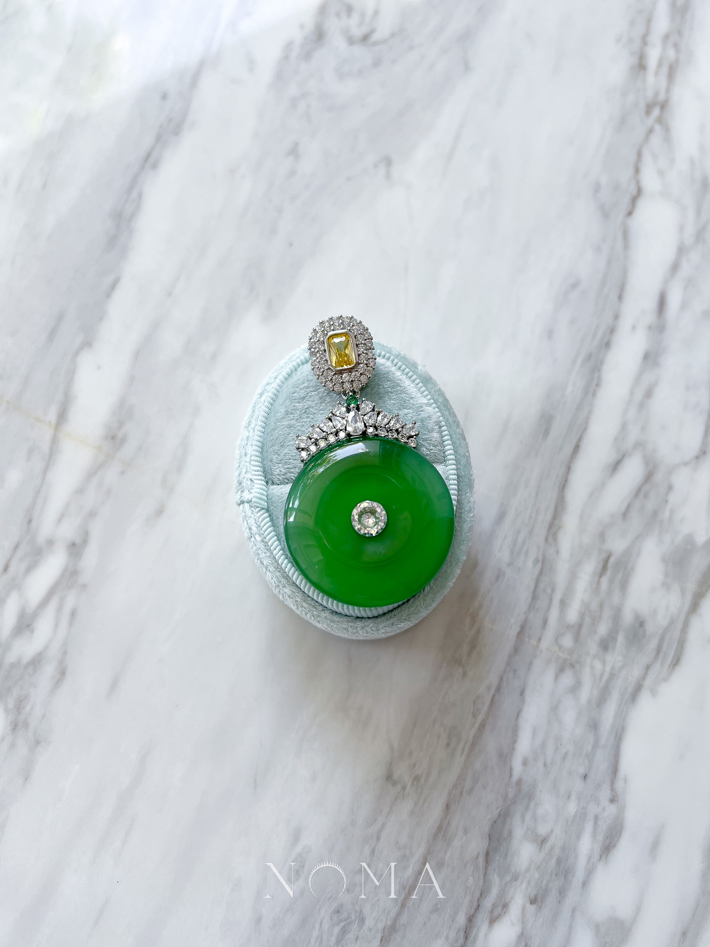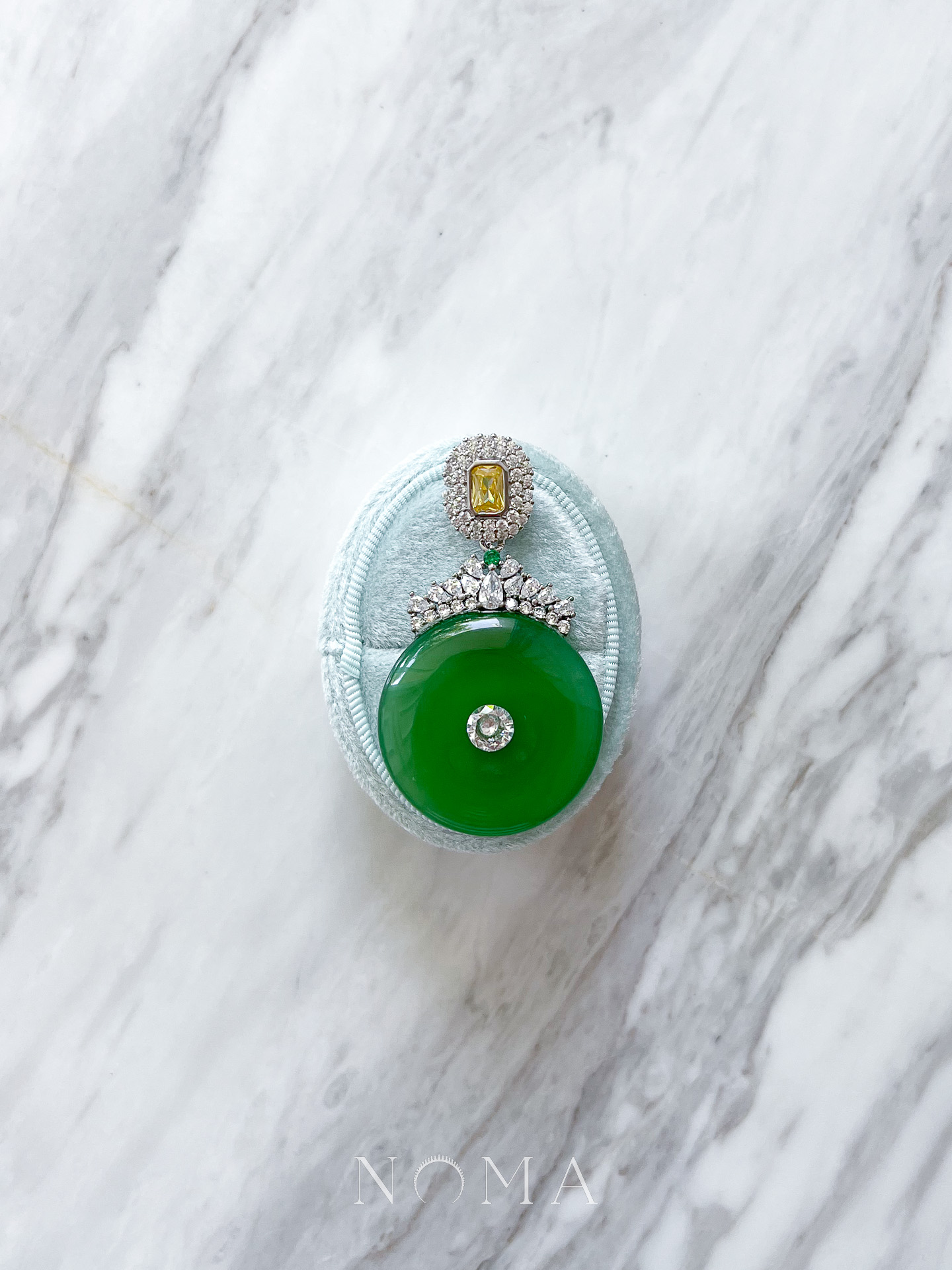 We only use natural jadeite stones for Jade Collection products. Please allow minor variations in color, shade, and marbling of the stones—a common and inevitable occurrence in nature—which only add to the beauty of it.