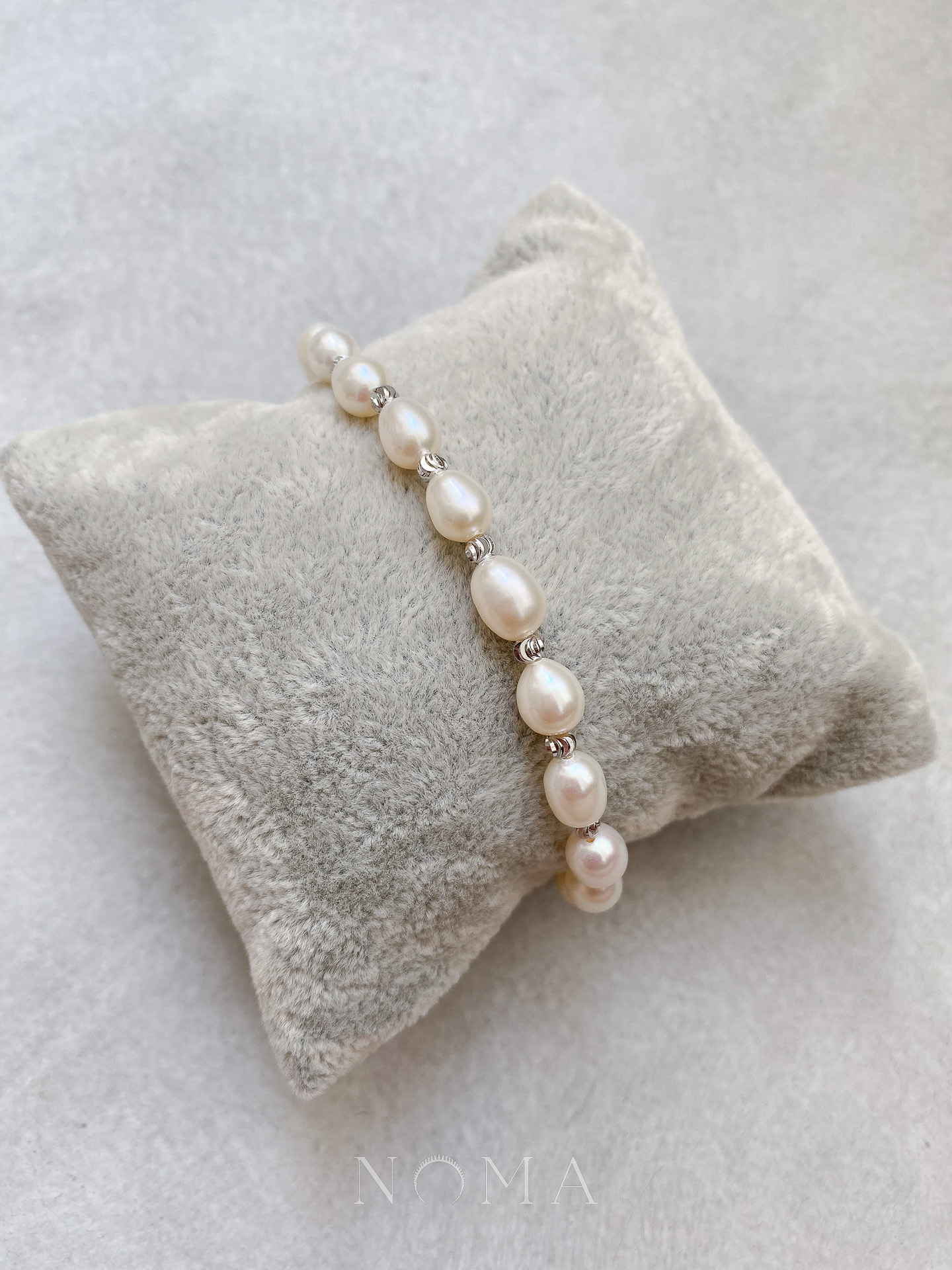 Oval Pearl Full Bracelet – Rhodium White Gold, White Pearl