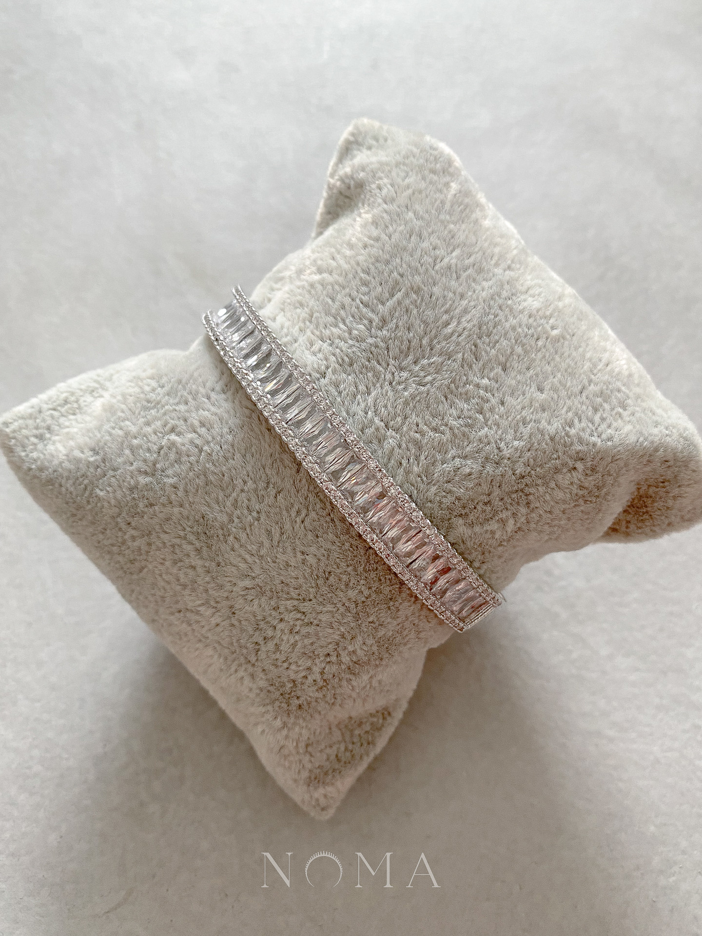 Paved Baguette Bangle – Rhodium White Gold