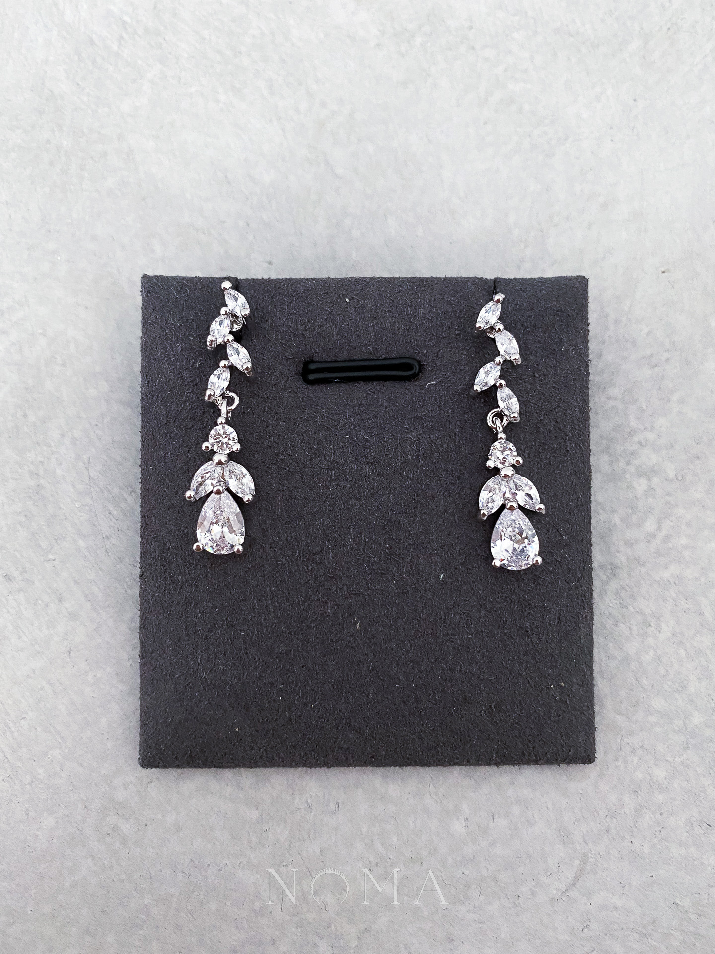 Dangling Marquise and Pear Earrings – Rhodium White Gold