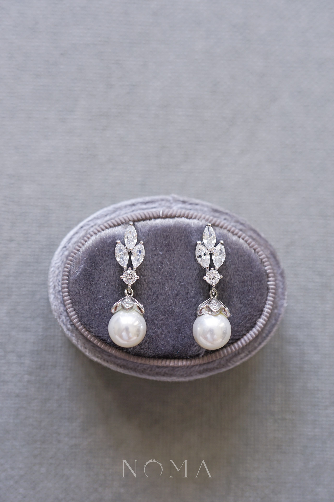 Marquise Trio Drop Pearl Earrings – Rhodium White Gold, White Pearl