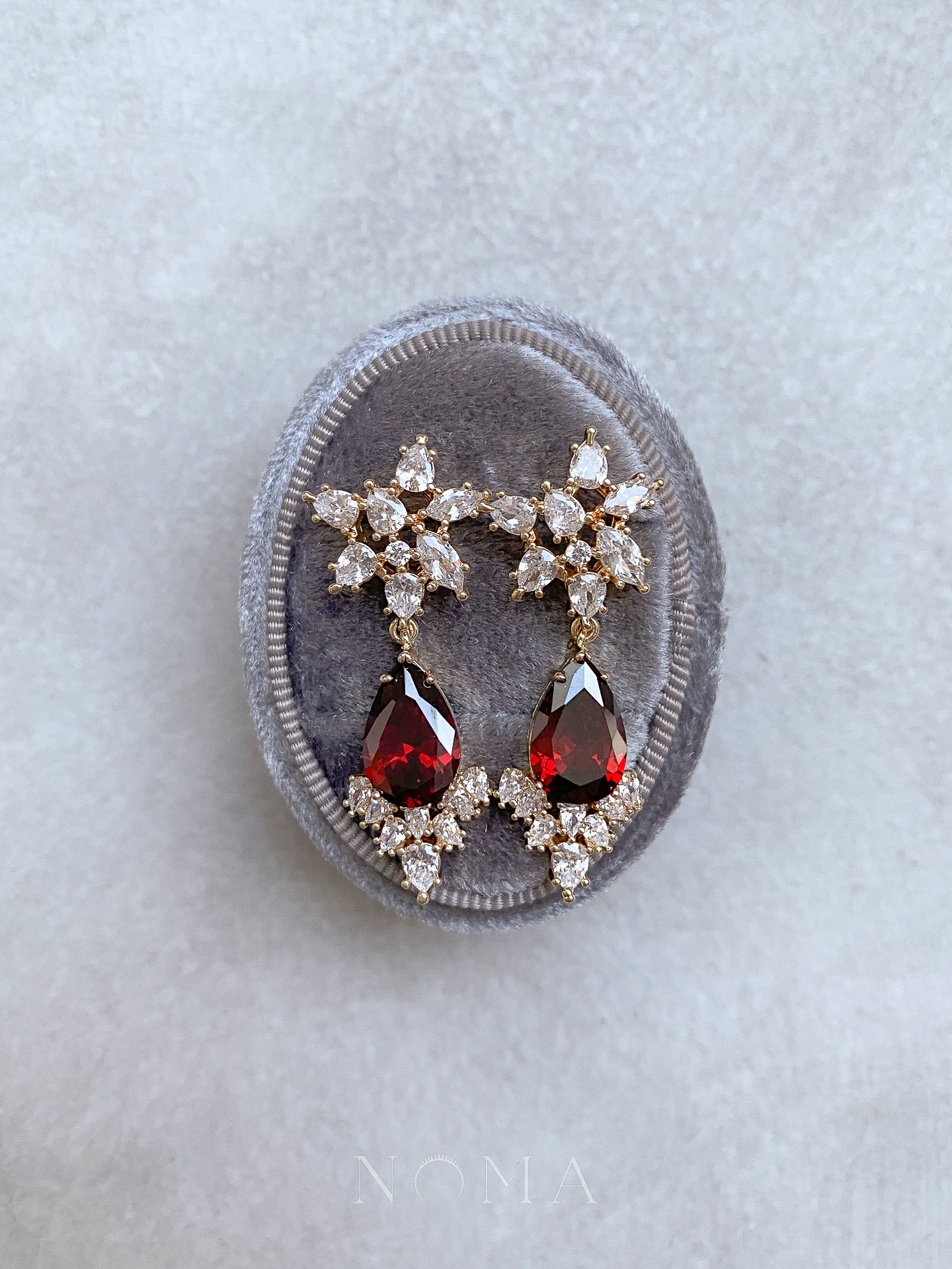 Paradise Earrings – 18k Yellow Gold, Ruby (Clip)