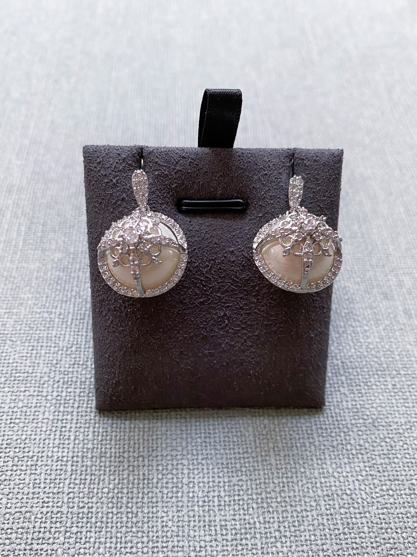 Caged Pearl Earrings – Rhodium White Gold, White Pearl