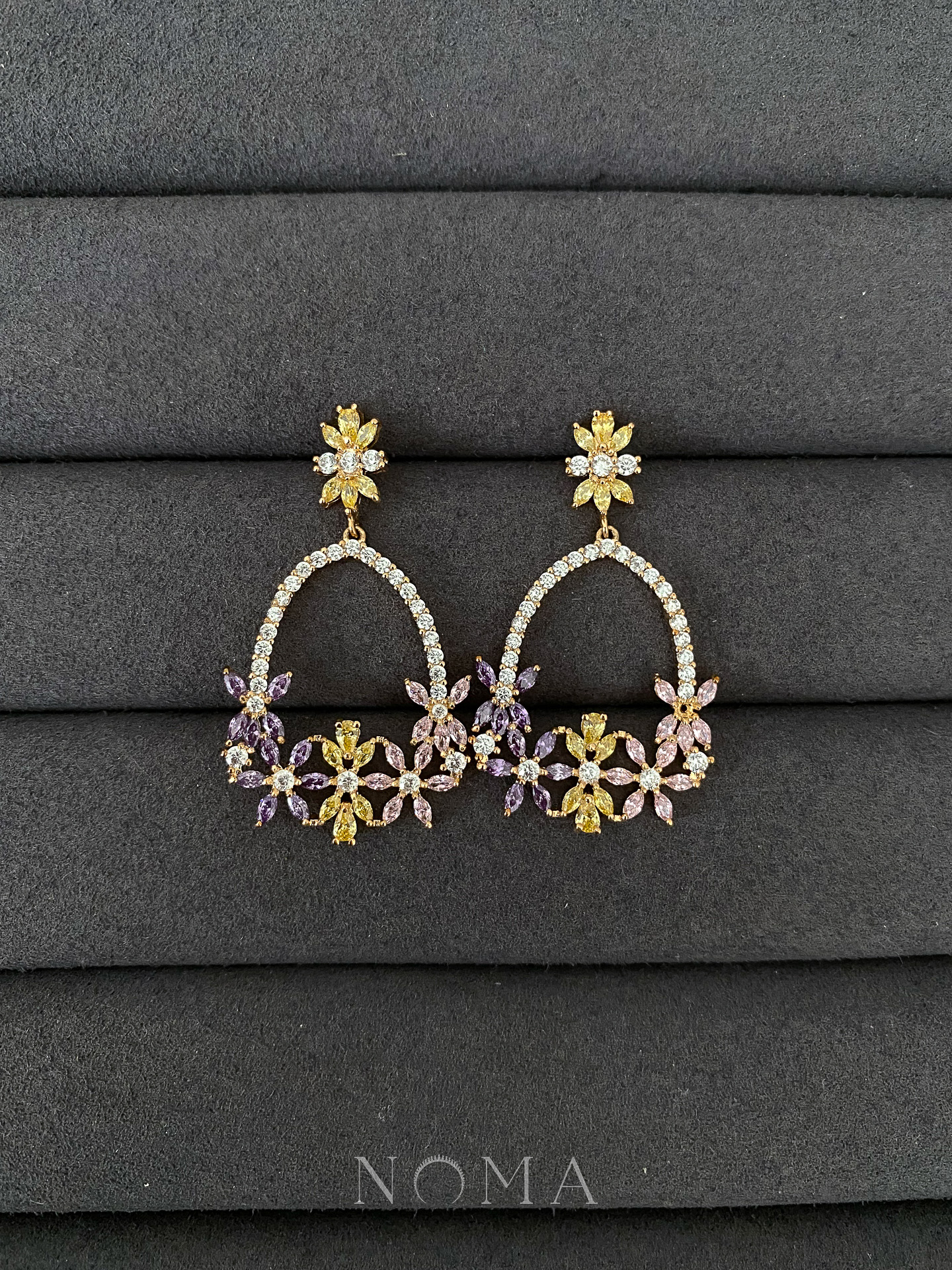 Flower Basket Earrings – 18k Yellow Gold, Rainbow