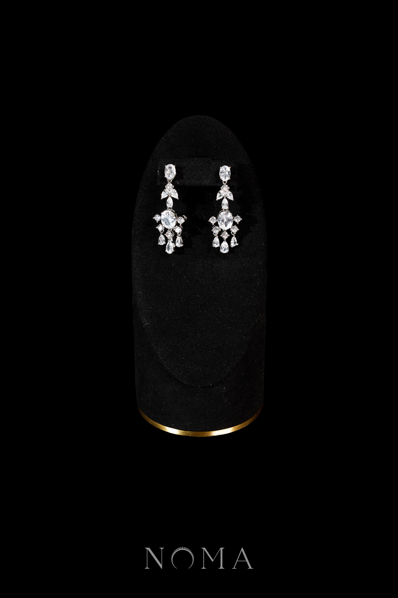 Royal Oval Dangling Earrings – Rhodium White Gold, White Diamond